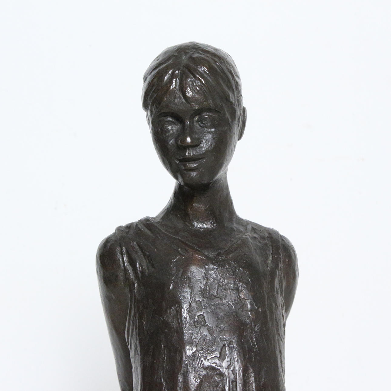 RENATE FELLNER. Bronzeskulptur, Schüchternes Mädchen.