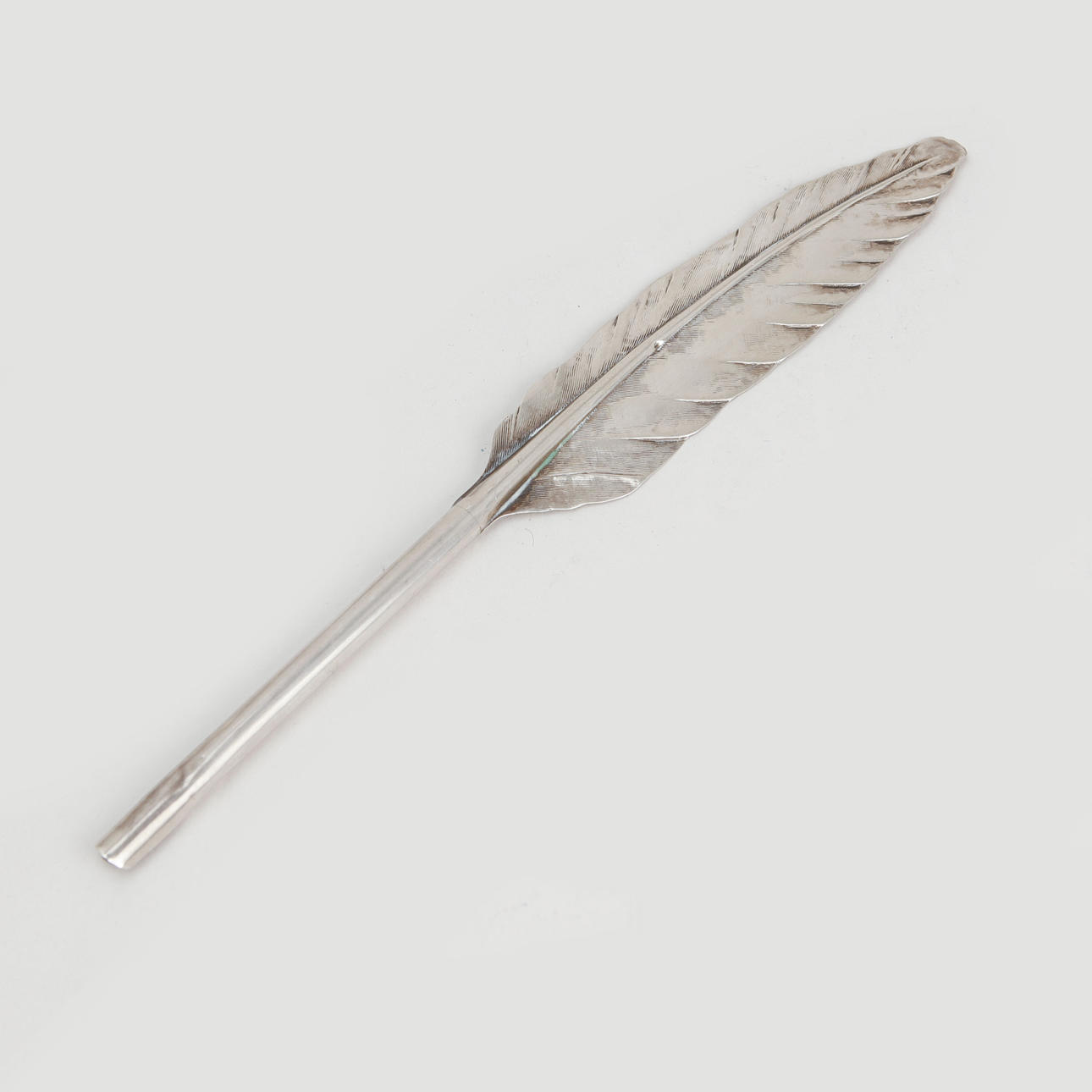 Tintenhorn Sandsprenger Aufsatz für Stahlstift in Form einer Feder in Silber.