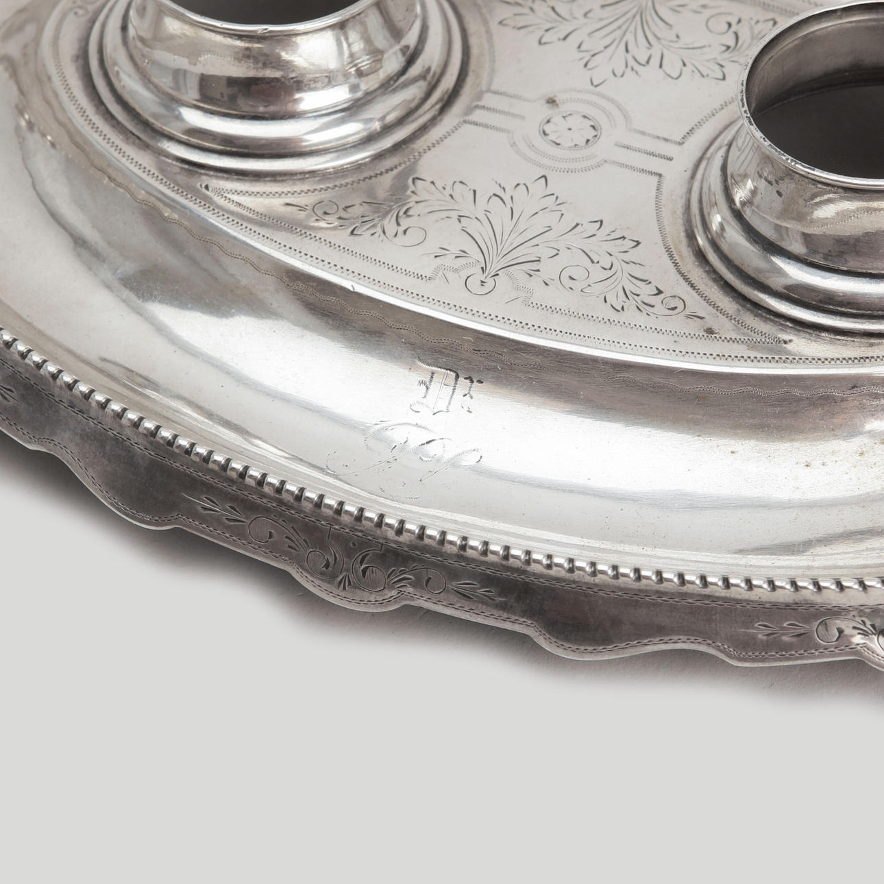 2520220. SCHREIBTISCH-SET, Silber und Glas, 4-teilig.
