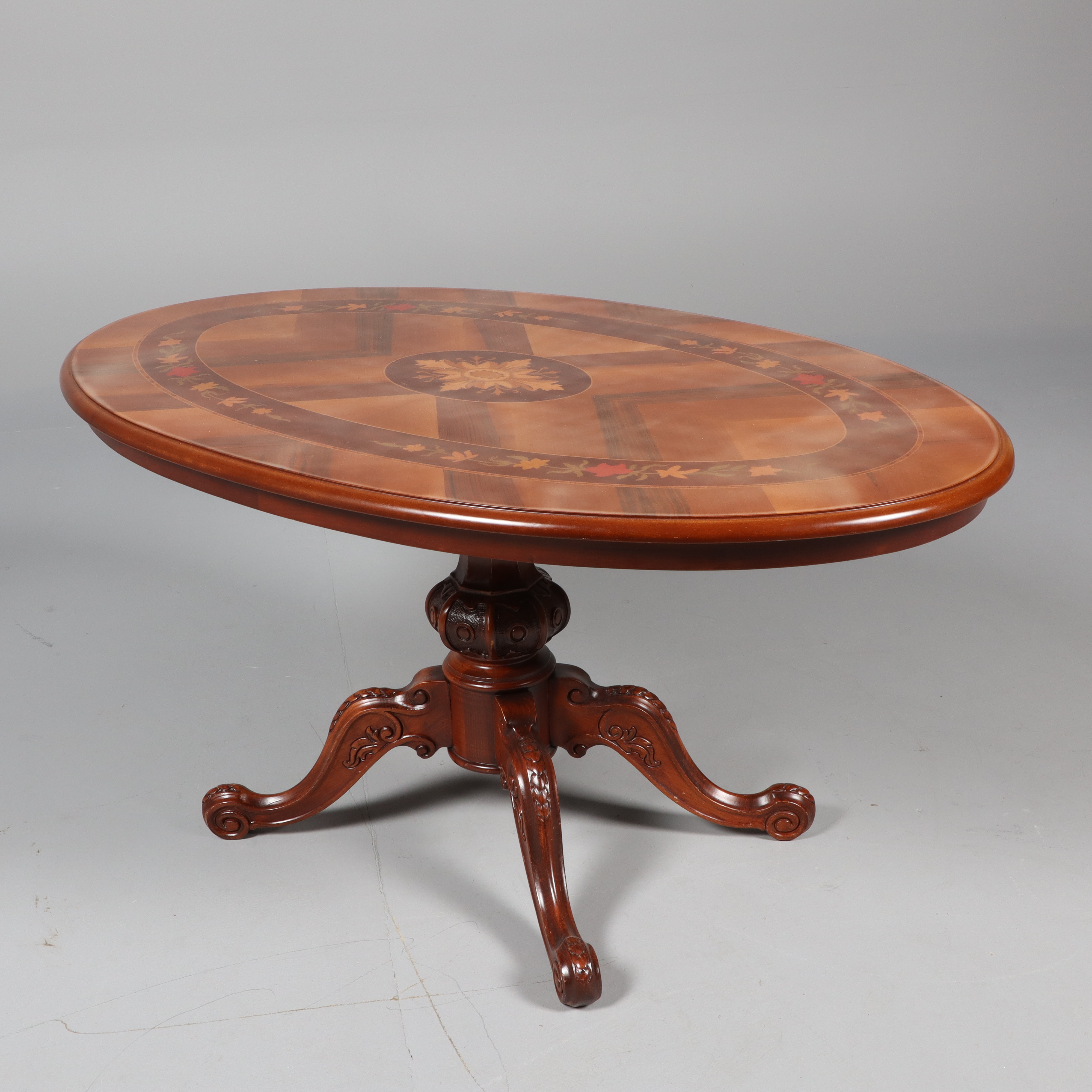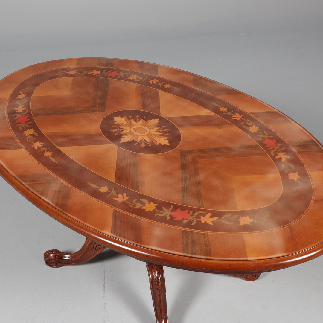 2527417. COUCHTISCH mit Säulenbeinen, Intarsien.
