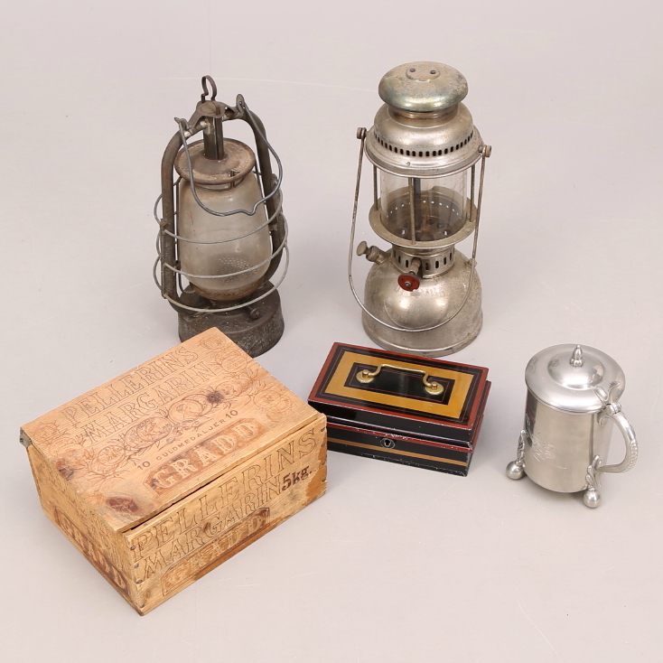 253198. PHOTOGEN LAMPS 2 Stück, TENNSTOP, MARGARIN-VERPACKUNG, KOFFER.