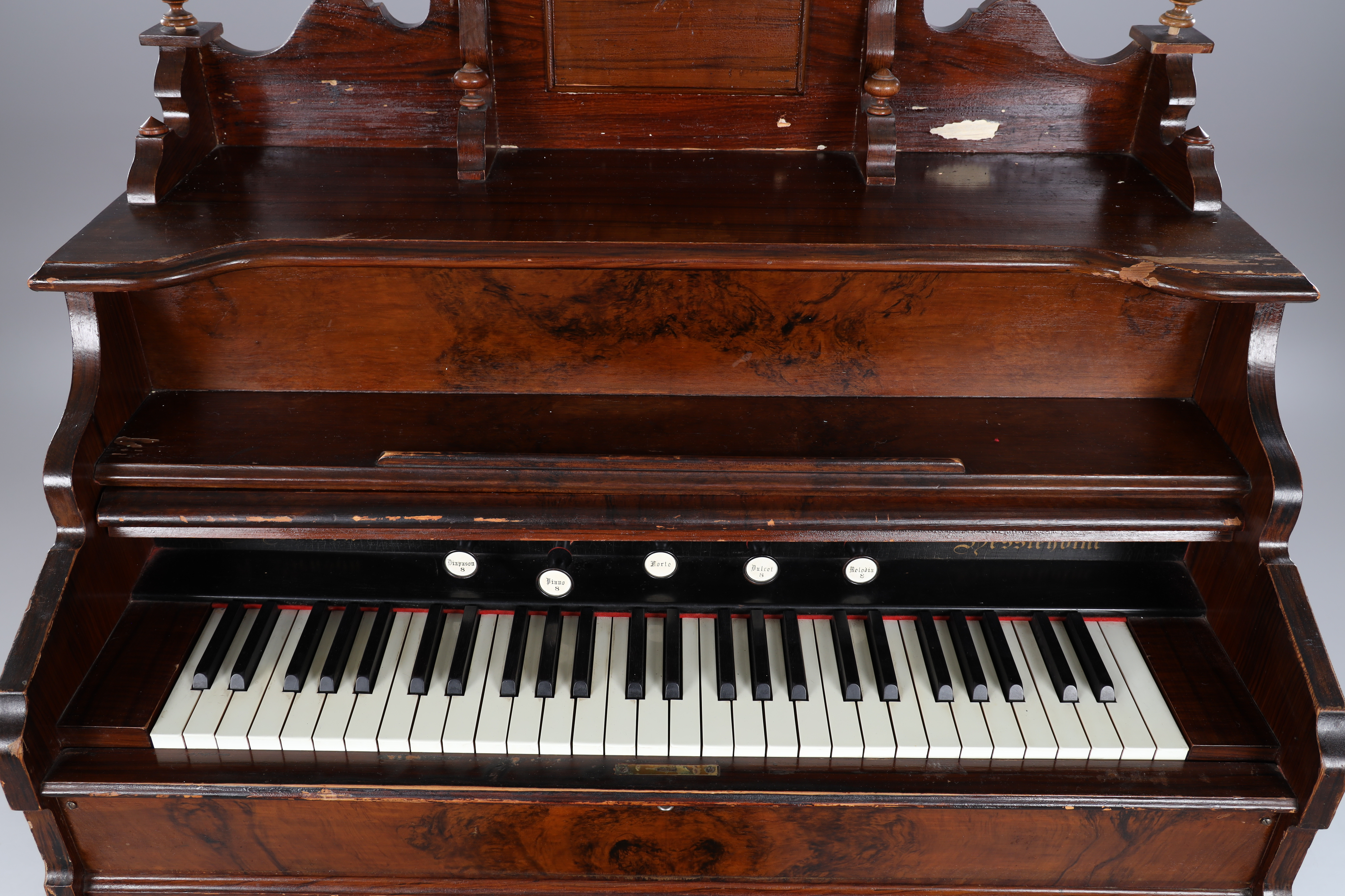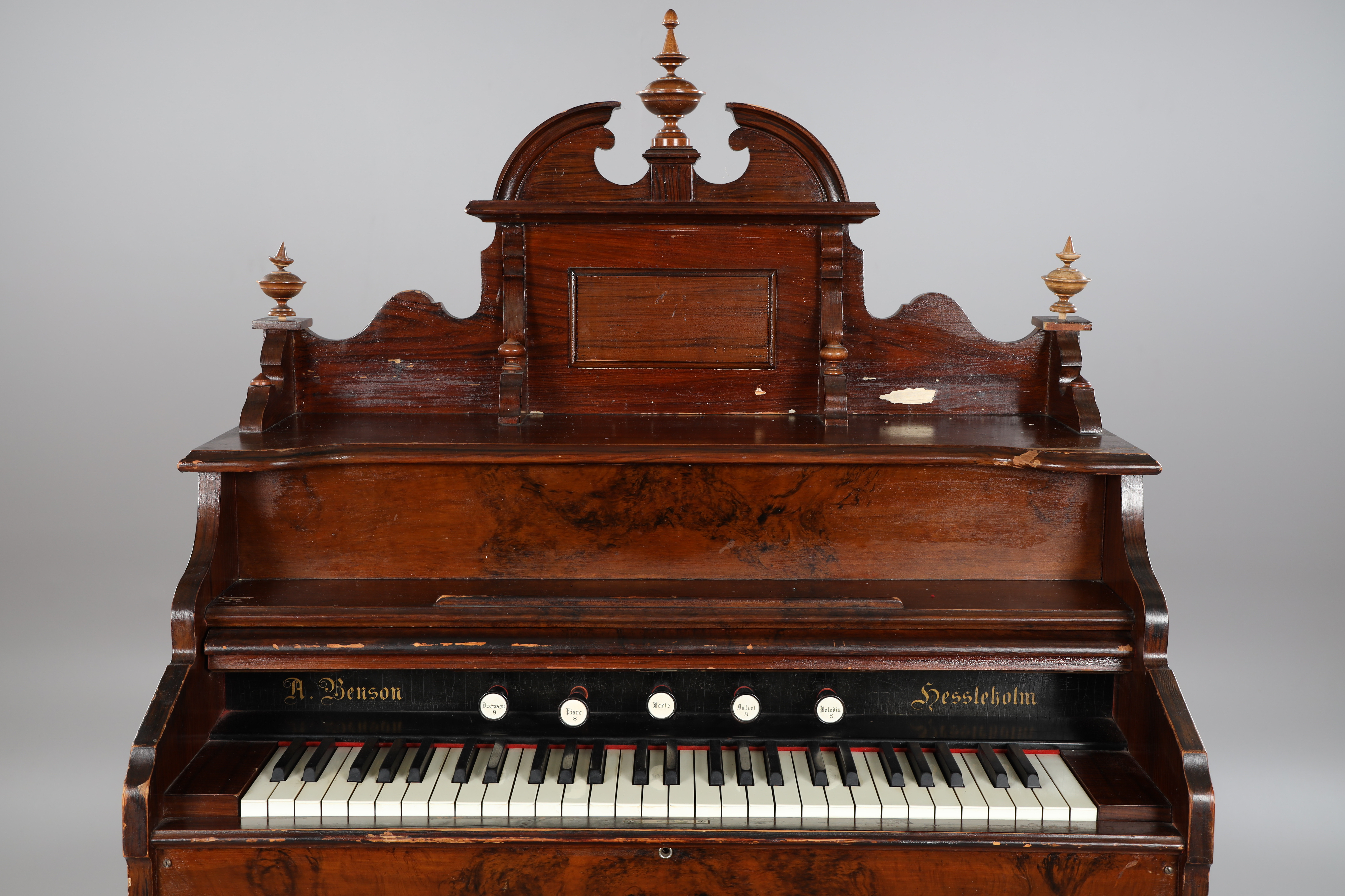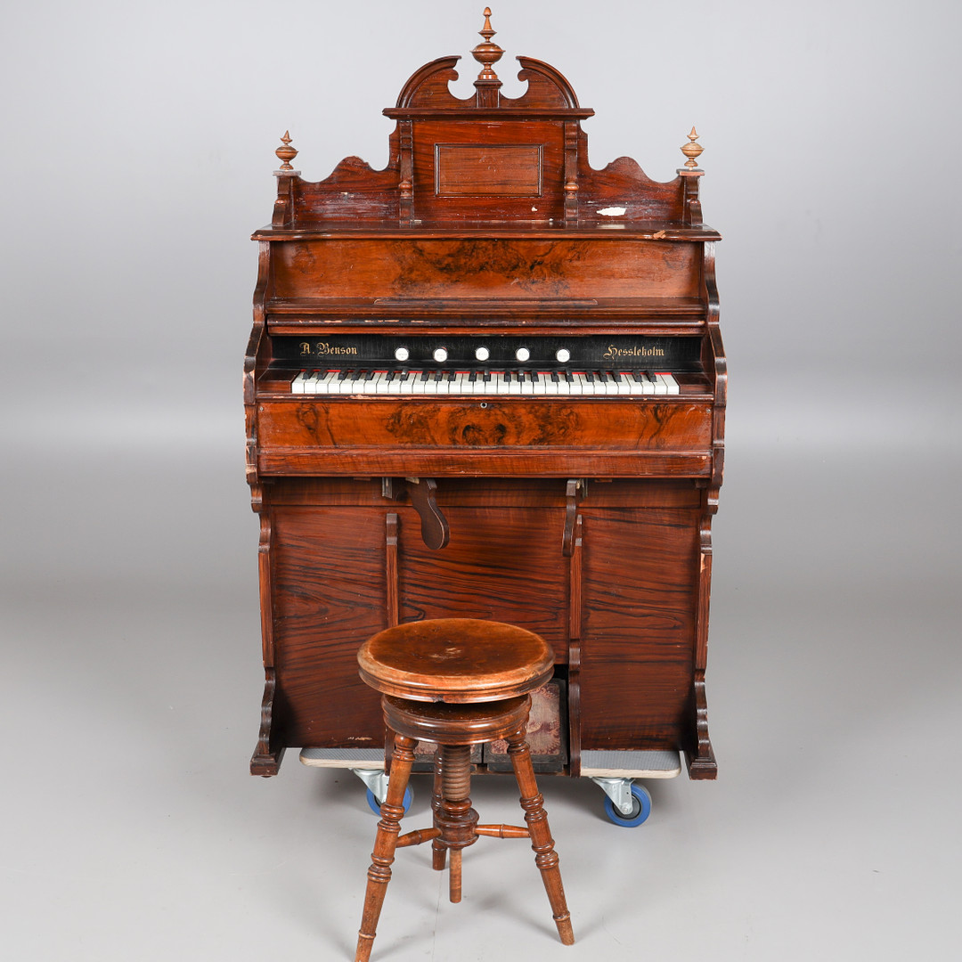 2532976. ORGEL, mit Hocker, markiert A Benson.