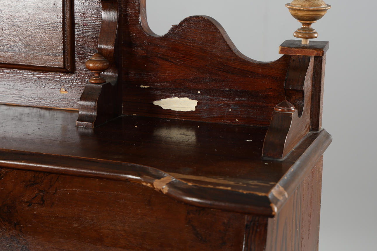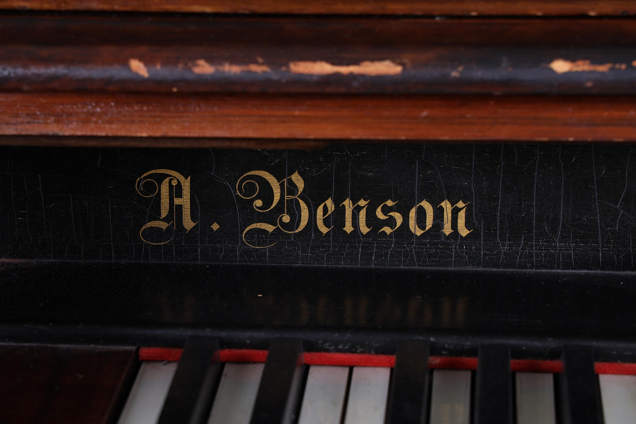 ORGEL, mit Hocker, markiert A Benson.