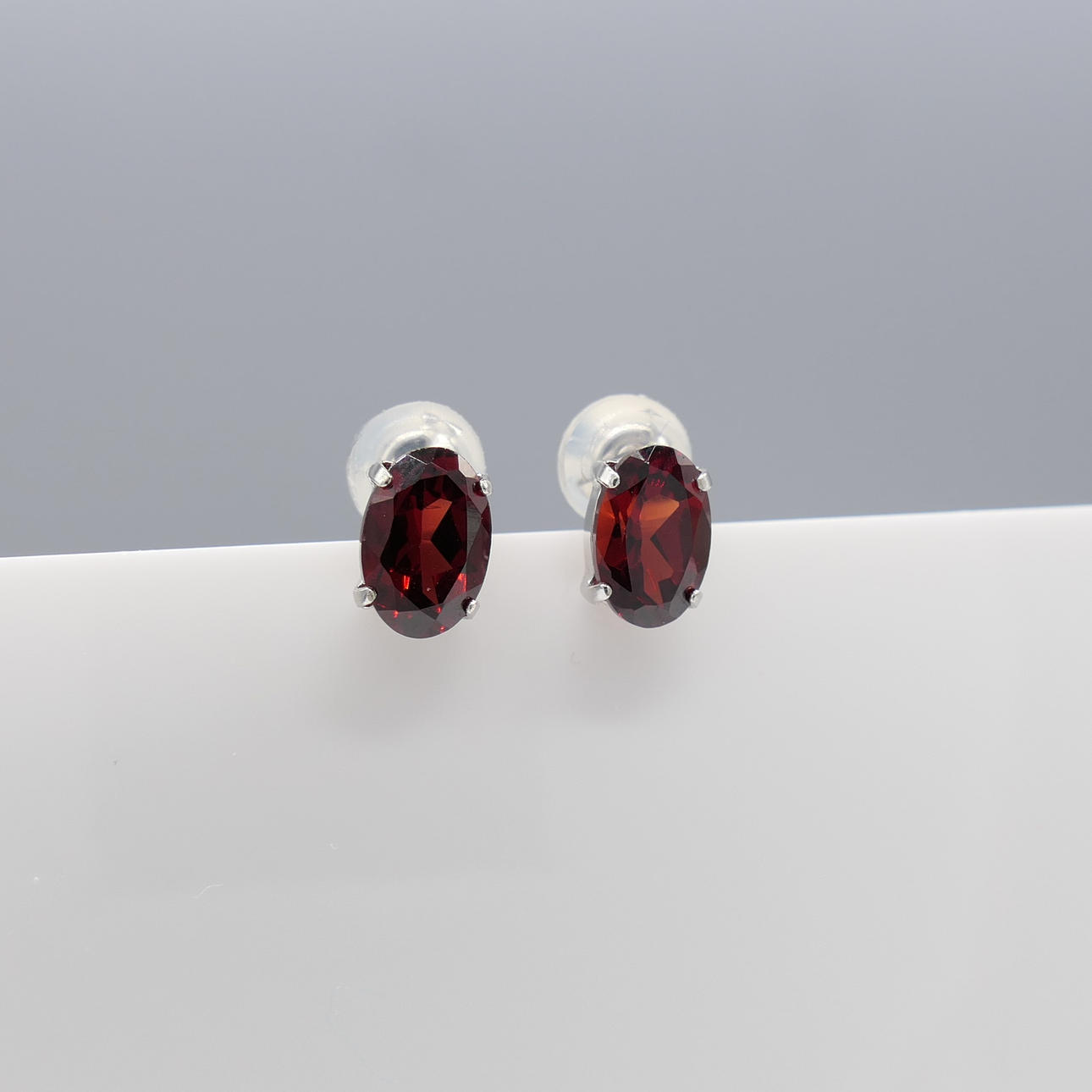 2533691. RED GARNET Ohrstecker, Weißgold.