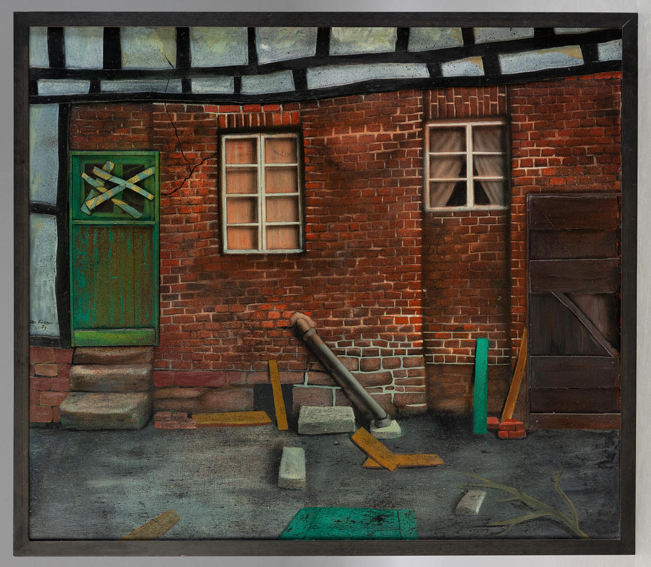 Hellmuth Der Eichner (1946-2011), Fassade, Mischtechnik mit Öl und Materialcollage auf Holz, 1974, links mittig signiert und datiert, ca. 101 x 116 cm, mit Atelierleiste ca. 106,5 x 121 cm.