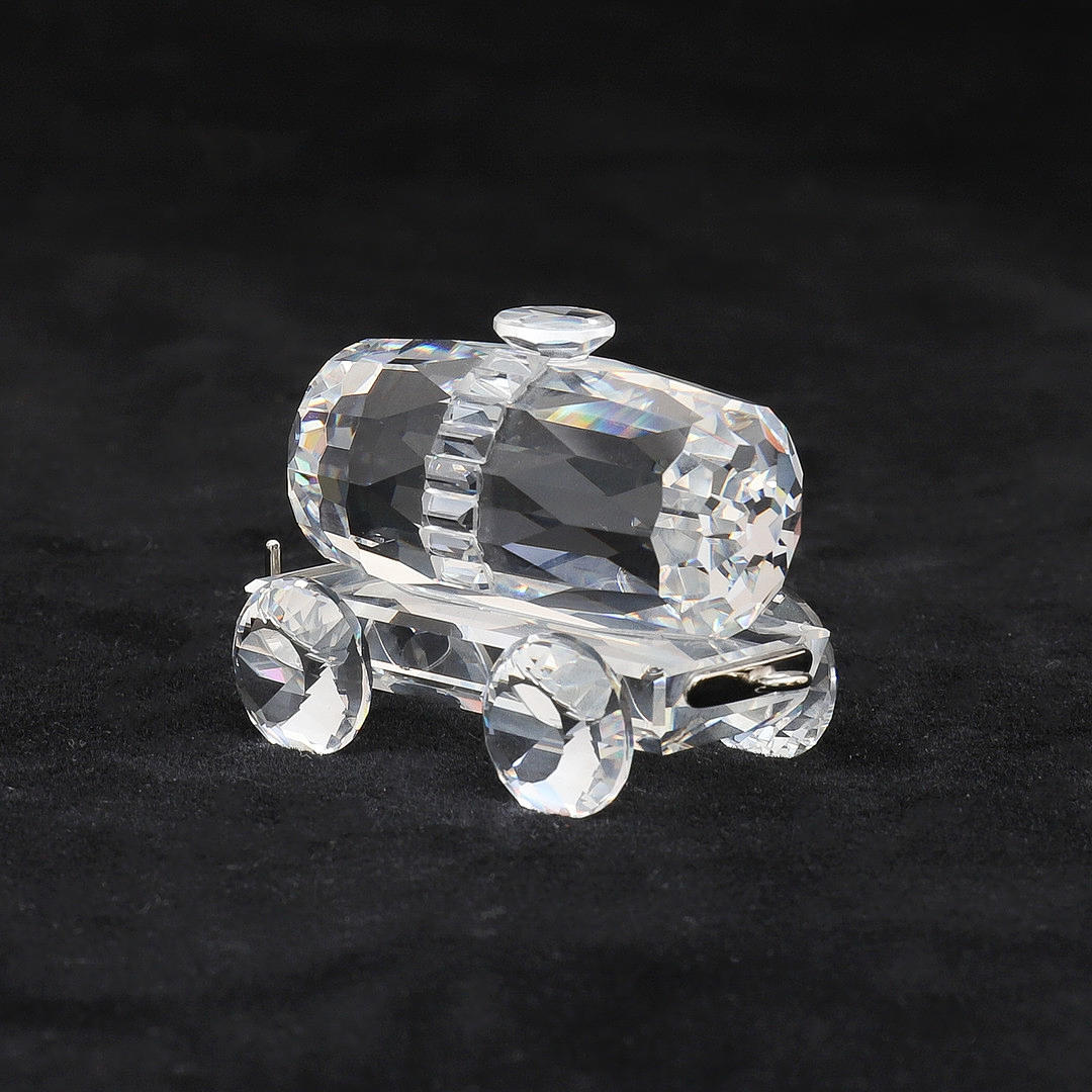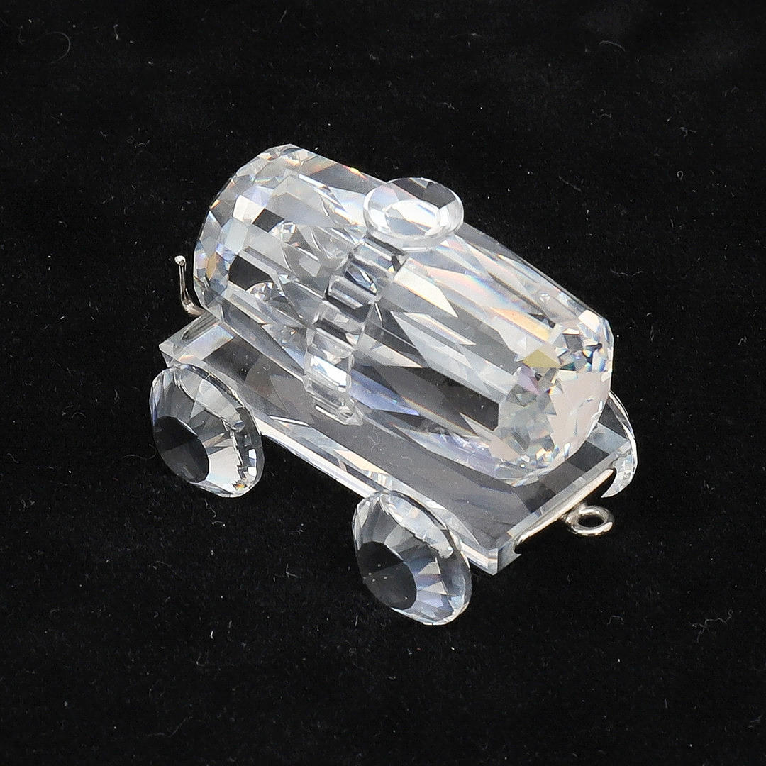 Nummer 015145, in klarem facettiertem Kristall, 3,5 cm hoch x 6 cm lang, zusammen mit Tank Wagon, Nummer 215170, in klarem facettiertem Kristall mit Metallhaken und Clip an jedem Ende zum Verbinden mit anderen, 3 cm hoch x 4 cm lang ohne Haken, beide mit Zertifikate und in Originalverpackung (2).