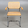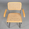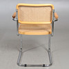 Rückenhöhe und Sitz mit geflochtenem Rattan. Gestell aus verchromtem Rohr. Rückenhöhe 84, Sitzhöhe 45 cm.