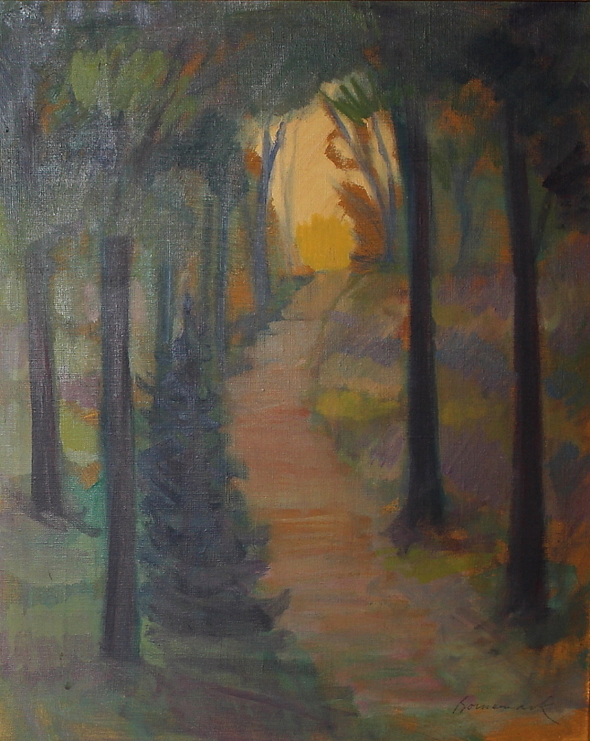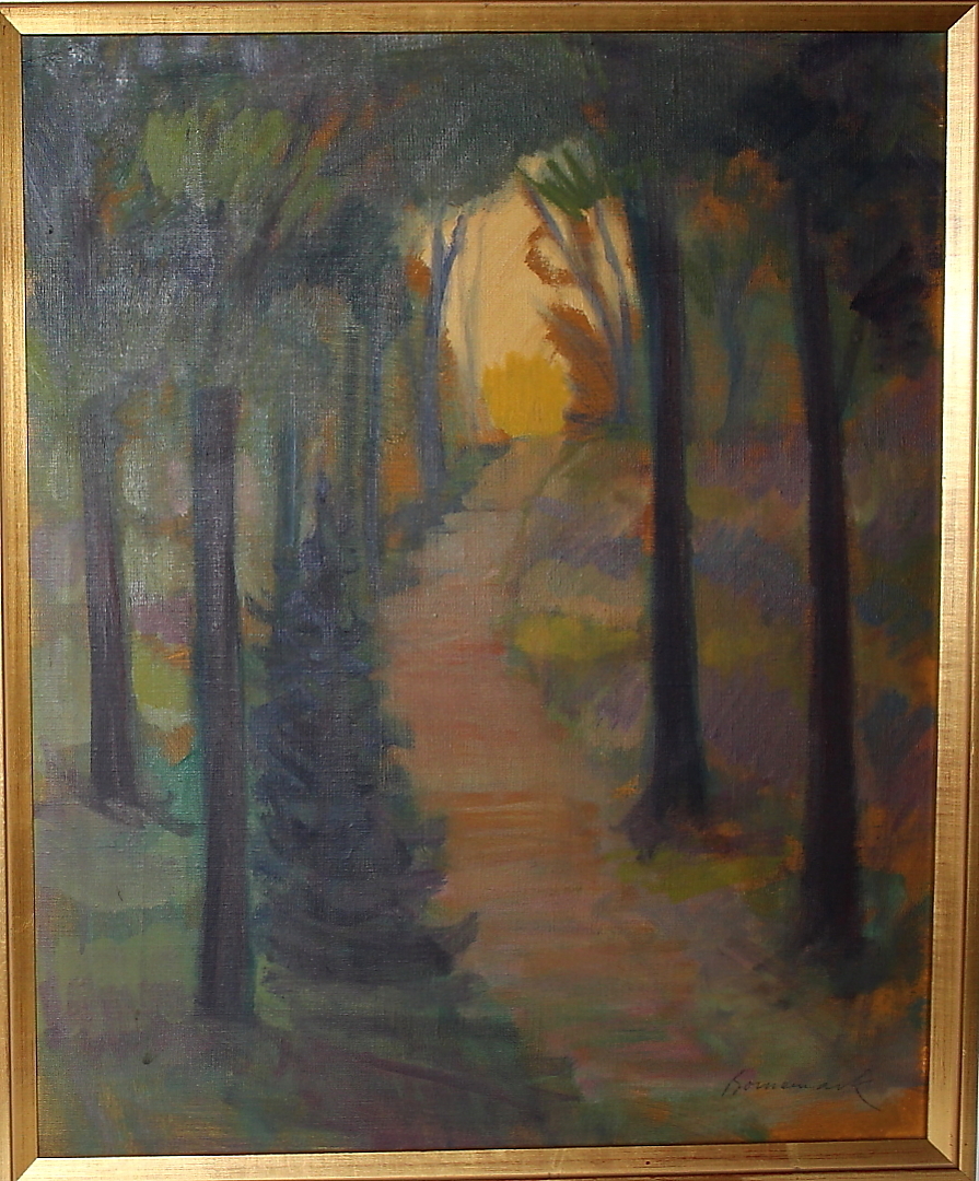 254563. OIDENTIFIERAD KONSTNÄR. Öl auf Leinwand, Waldweg, signiert Bornemark.