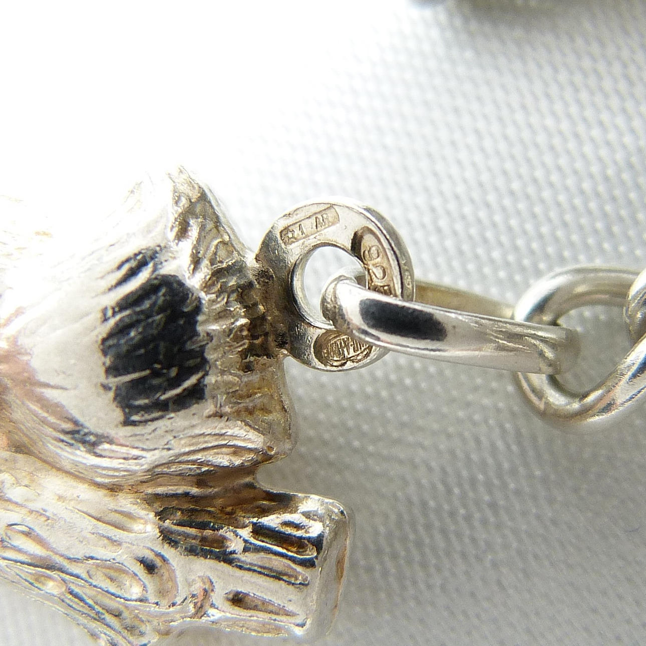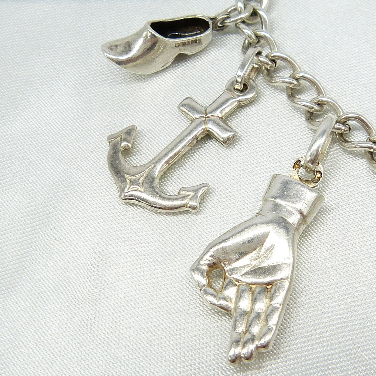 Dieses Armband und die Charms sind aus Silber, punziert und gestempelt "925".