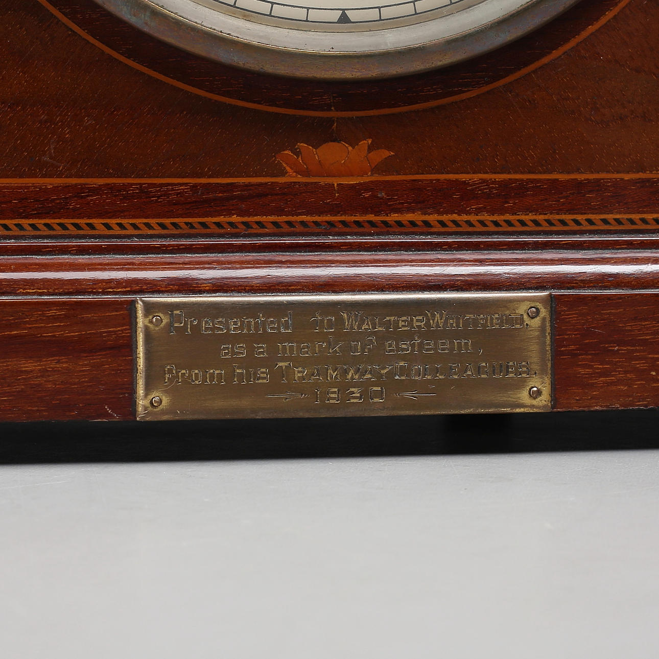 Abzeichen markiert: Überreichung von Walter Whitfield als Zeichen der Wertschätzung von seinen Straßenbahnkollegen. 1930.