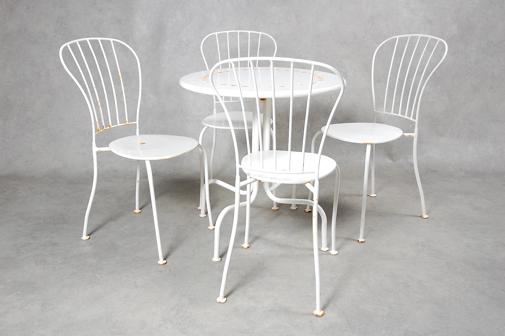255495. GARTENMÖBEL, 5-teilig, Schmiedeeisen, Blech.