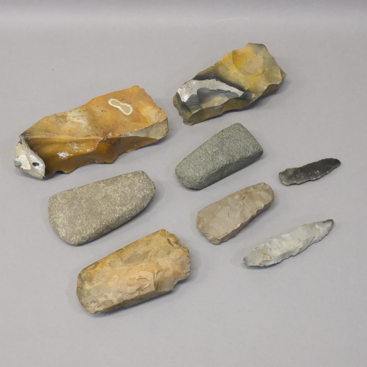 2556114. SECHS STEINZEIT-PICKEL & ZWEI SCHABER.