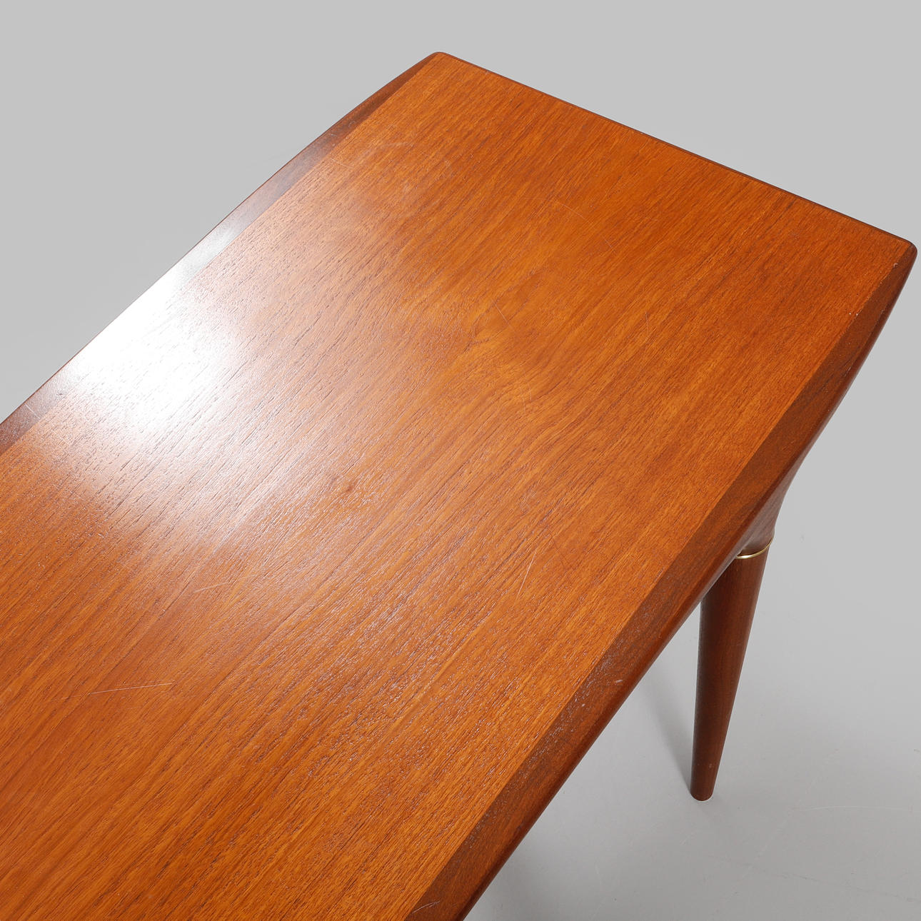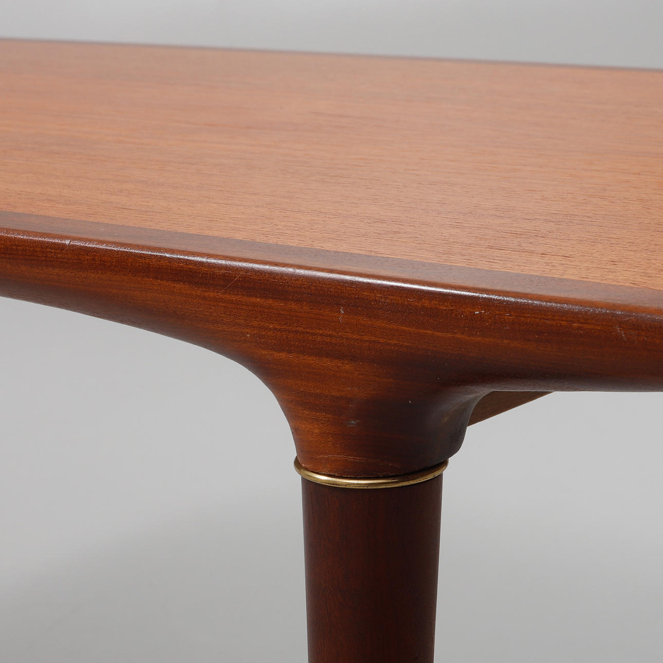 Furniert in Teak und Mahagoni. Länge 130 cm, Breite 48 cm, Höhe 48 cm.