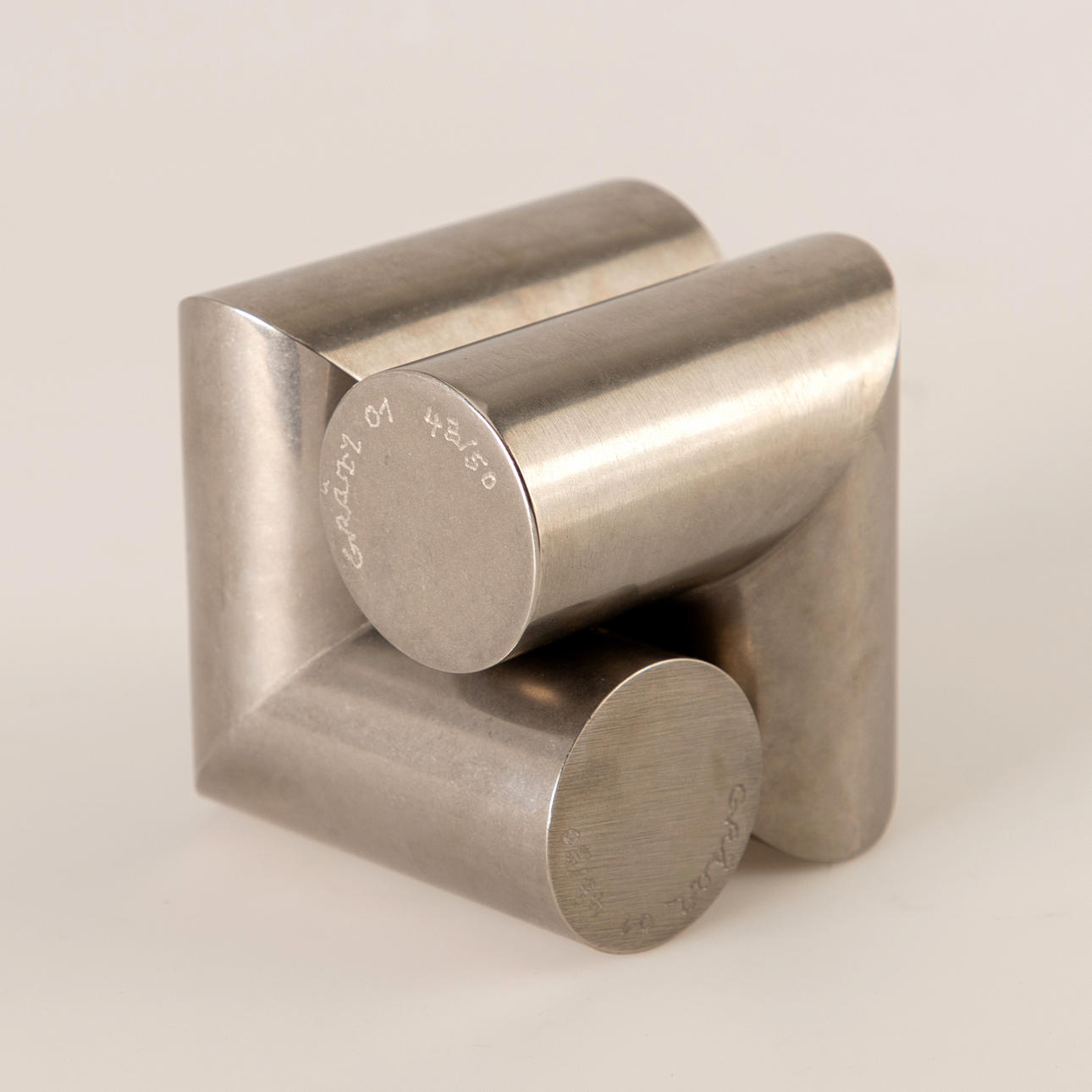 Friedrich Gräsel (1927-2013), Kubus, Stahlskulpltur, 2001, signiert, datiert und nummeriert, Exemplar 43/50, ca. 9,5 x 9,5 x 9,5 cm.