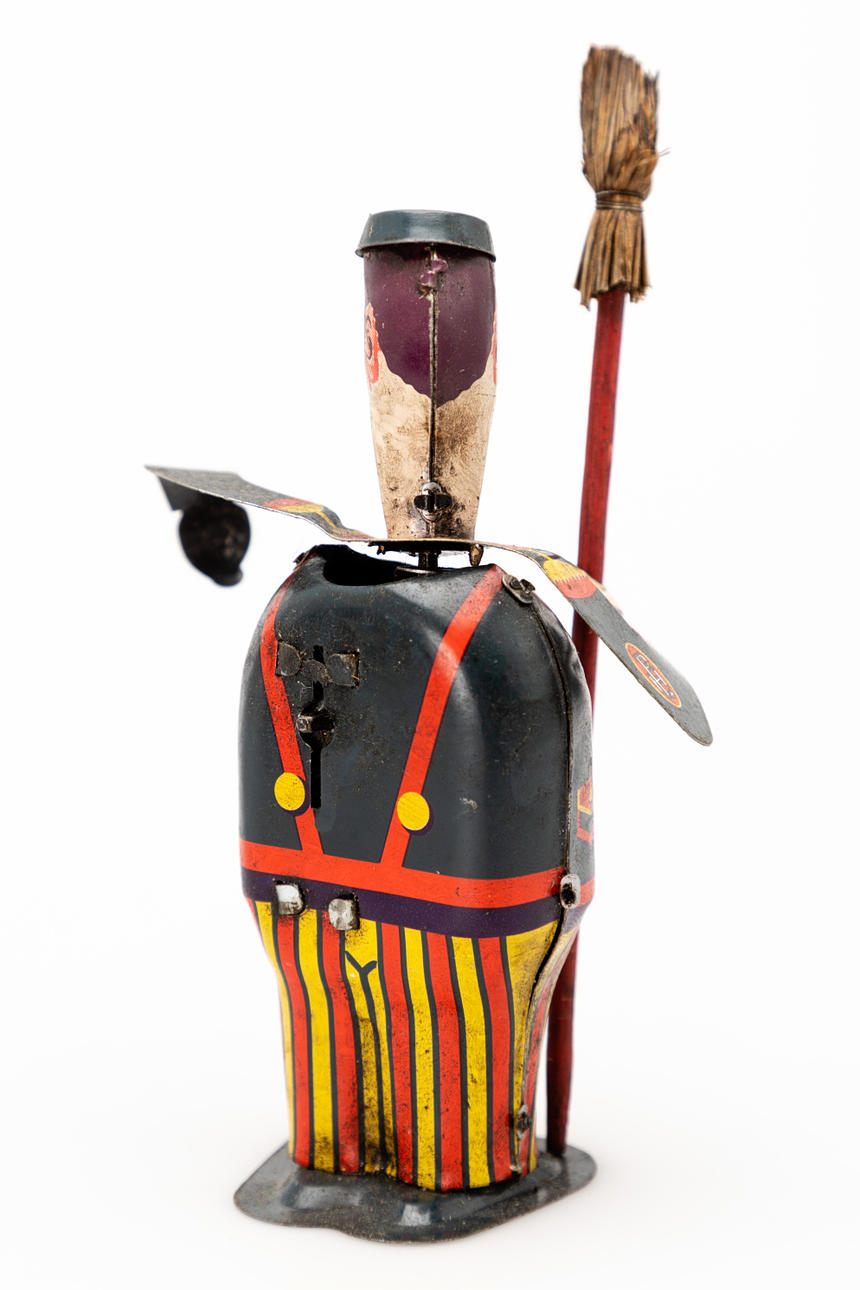 Straßenfeger mit beweglichem Kopf, lithographiertes Blech, Größe ca.: 15 cm.
