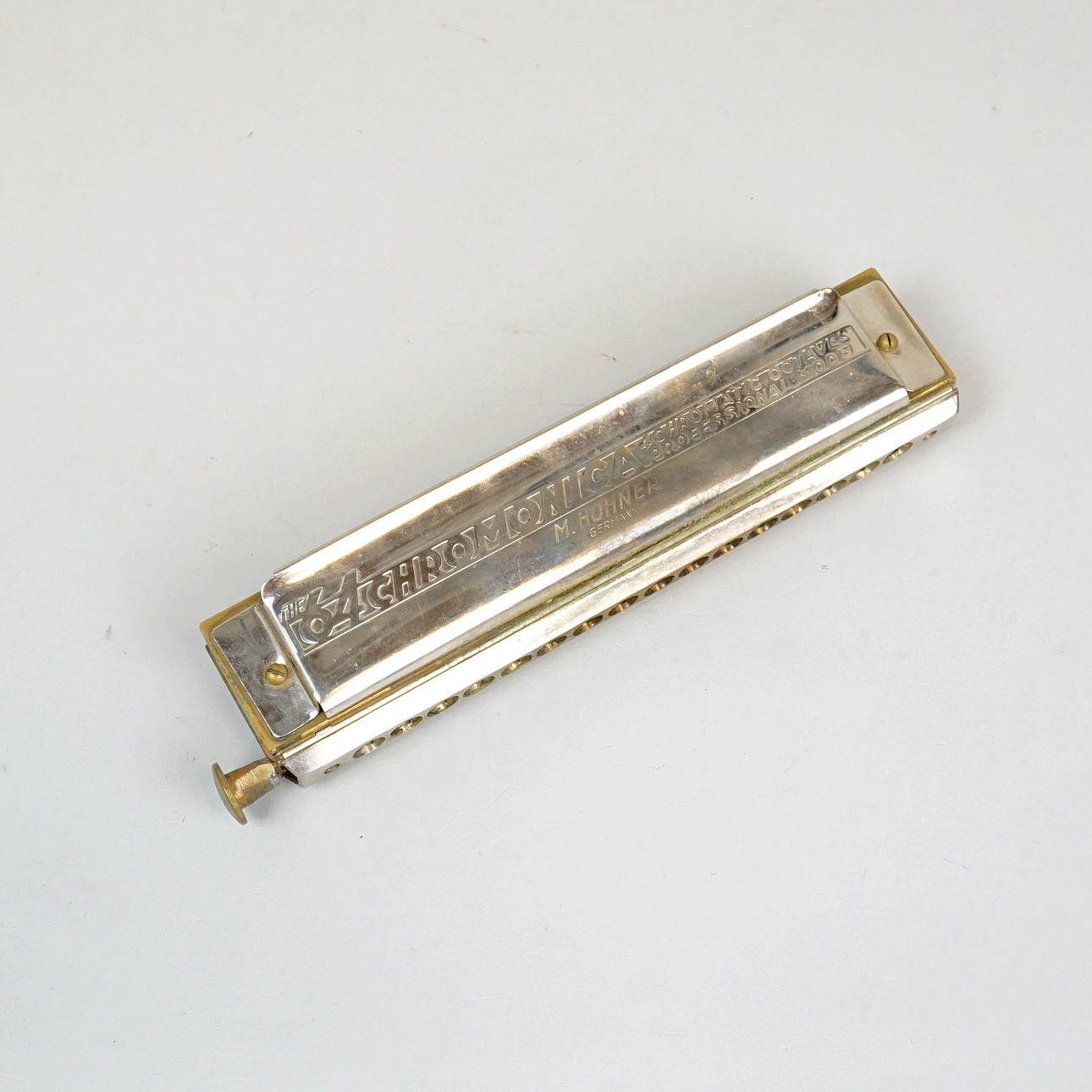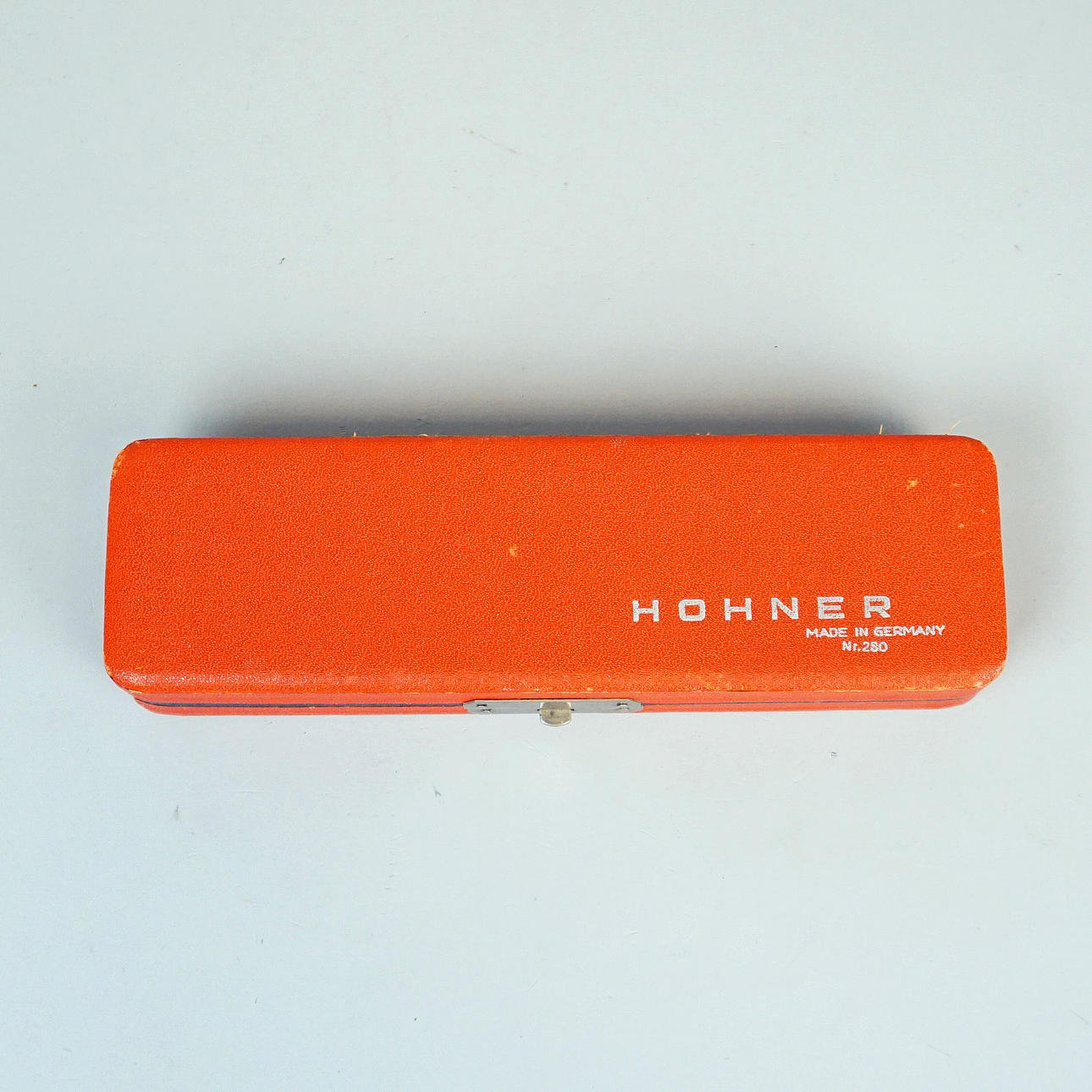 Gemarkt "4 chromatic octaves, professional model" im Originalkoffer, Koffer gemarkt "Hohner, Made in Germany 280" Länge inkl. Koffer ca. 21 cm.
