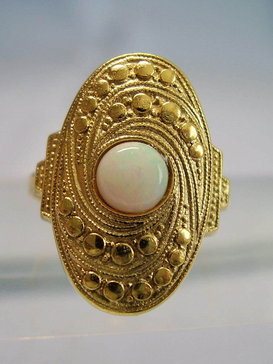 Er hat einen großen, ovalen Ringkopf, der mittig einen runden Voll-Opal trägt.