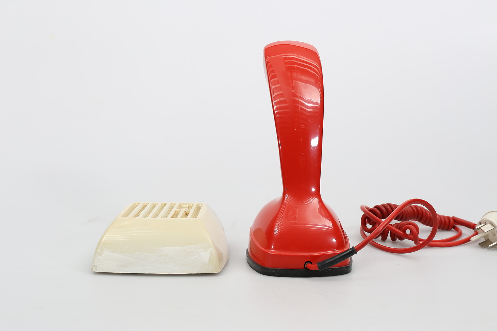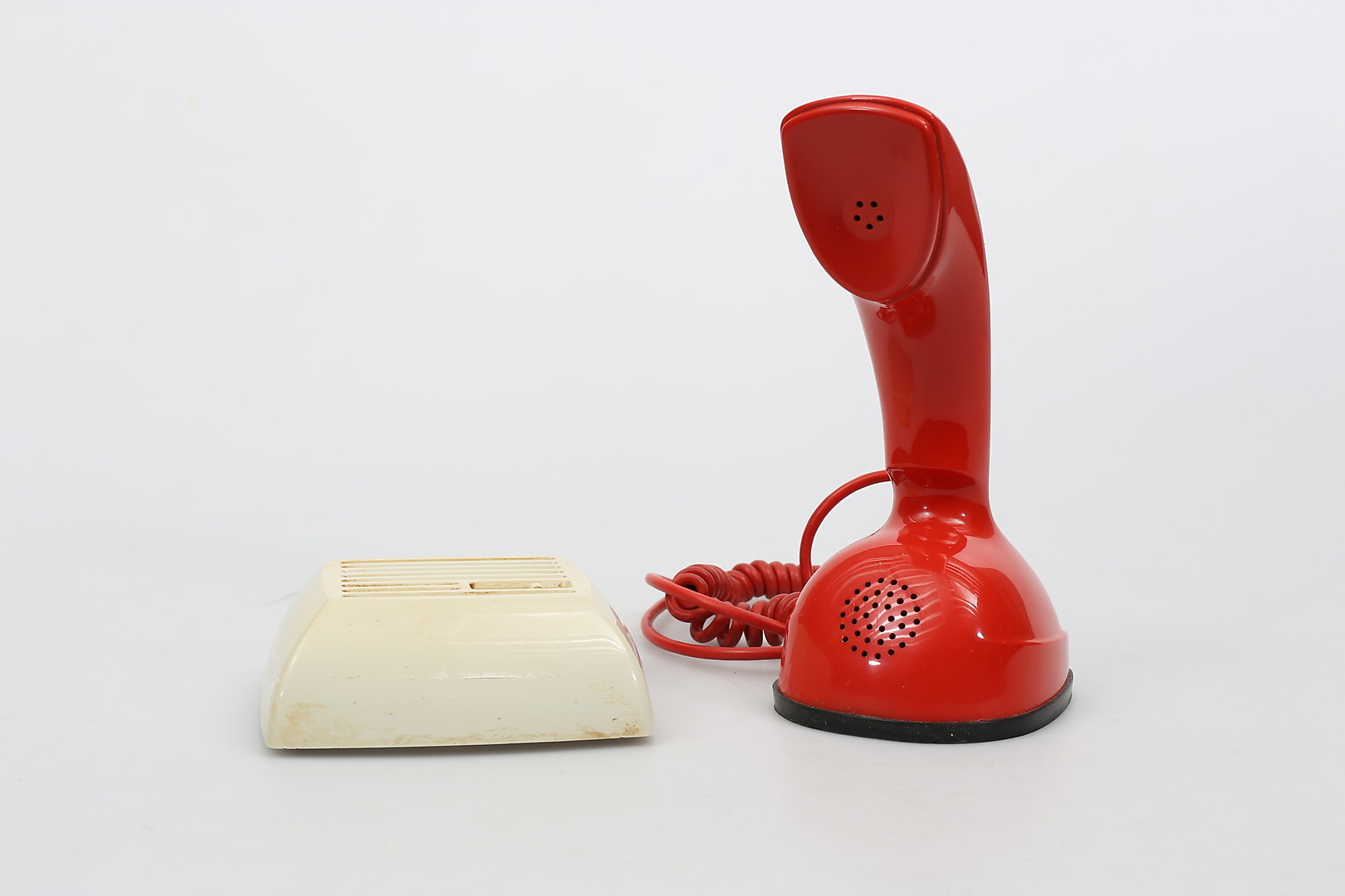 257058. TELEFON, rot, "Ericofon", sogenanntes Cobra-Telefon.