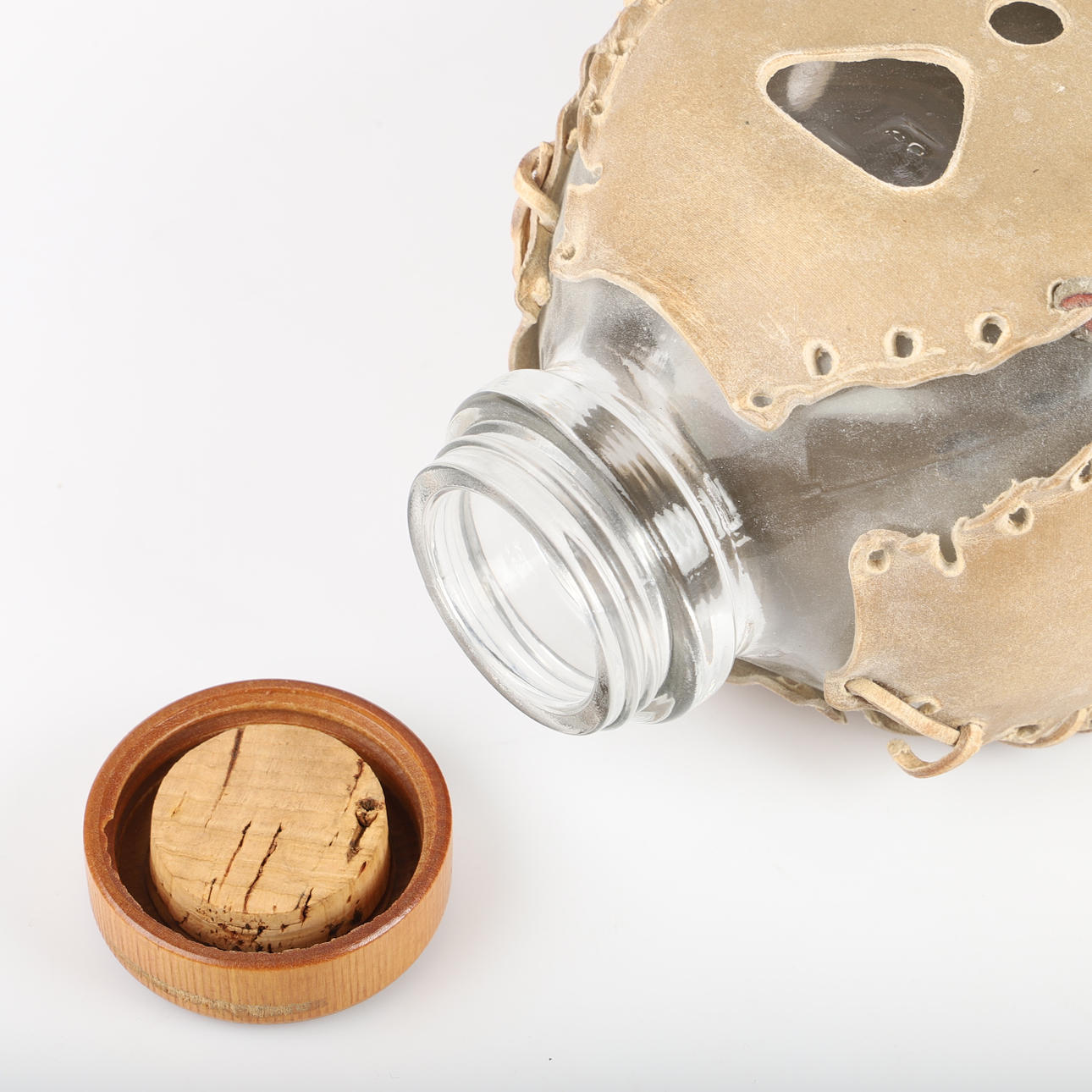 2571940. WASSERFLASCHE, Militär, Glas/Leder, Schweden.