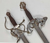 Eisen mit spitz zulaufender sowie partiell zisellierter Klinge, an Griff mit Drahtwicklung, 2 verschieden ausgeführte Dekosäbel, L ca. 72 und 76 cm.