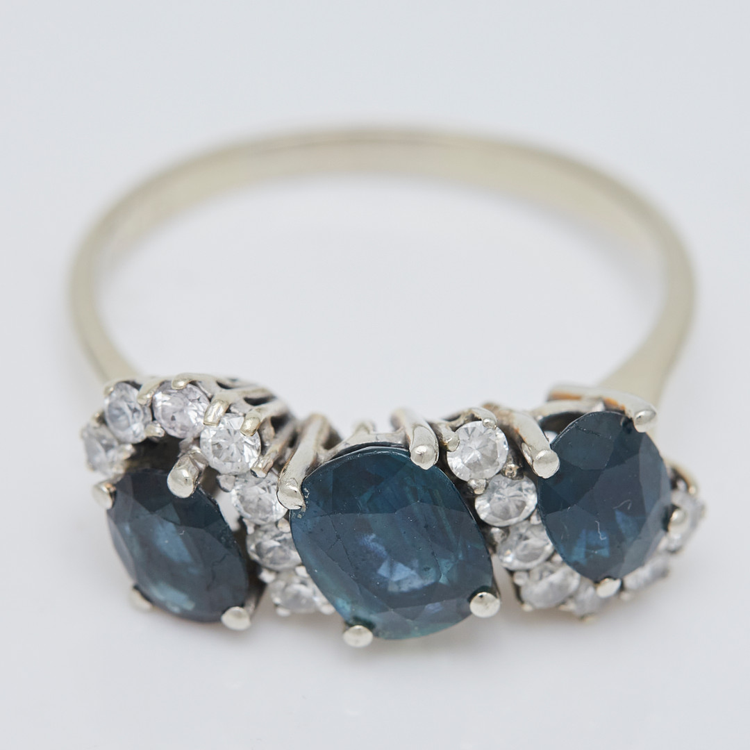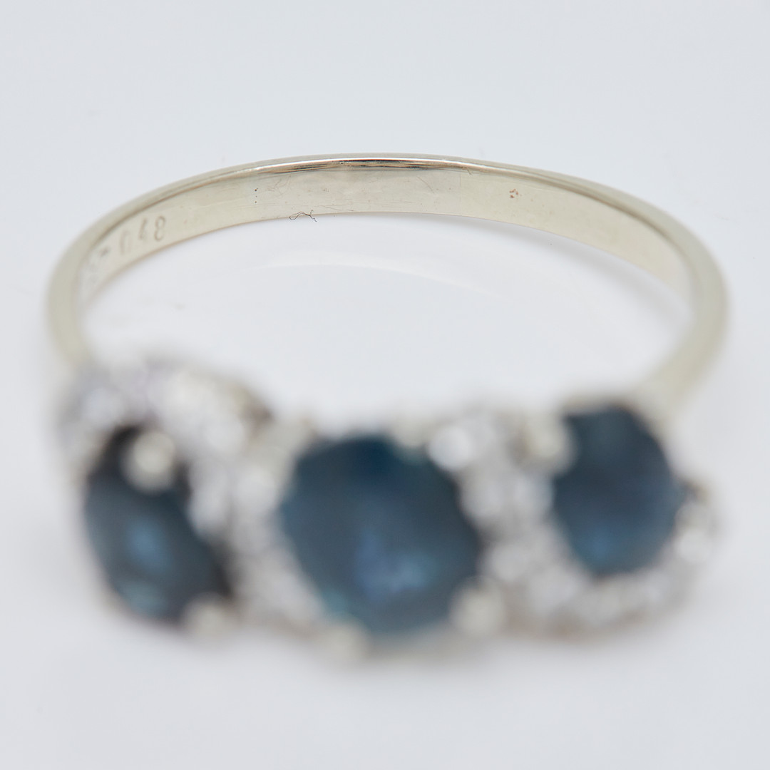 2574144. Ring, 585er Weißgold, Saphire, Brillanten.