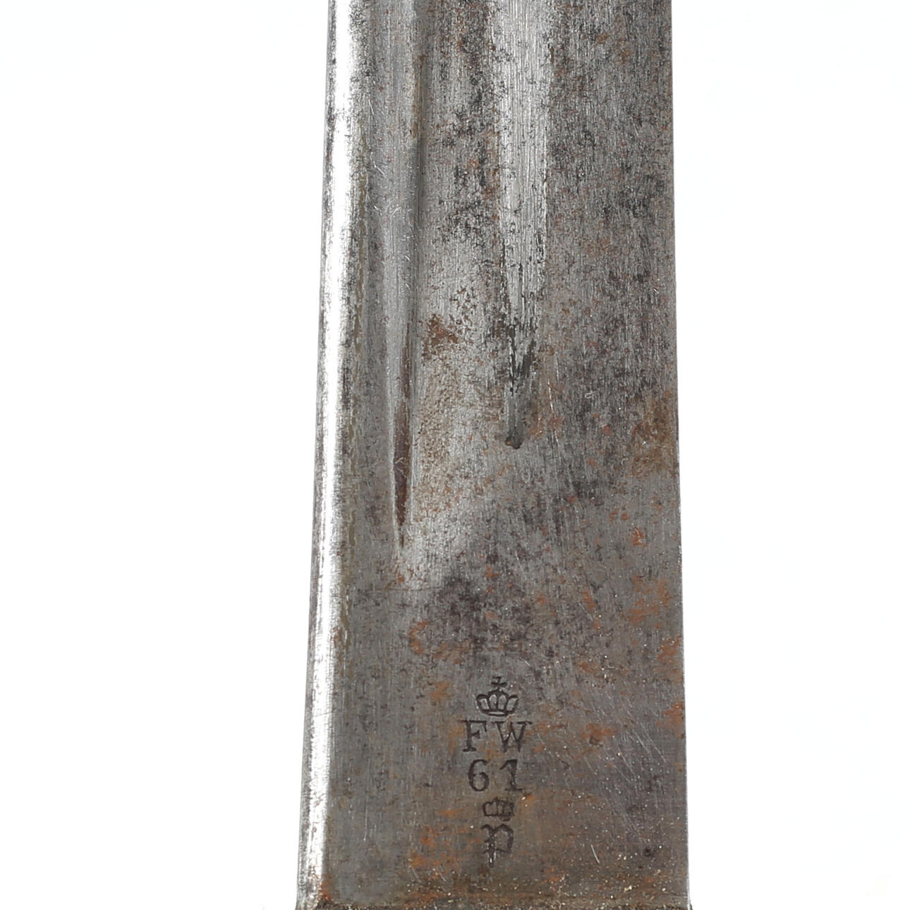 Hülse gestempelt SB 3 222 P Parerstange gestempelt IWD 329 Griff gestempelt P und 7915 Klinge gestempelt FW G1 P und W. Clauperg Solingen Gesamtlänge ca. 64,5 cm.