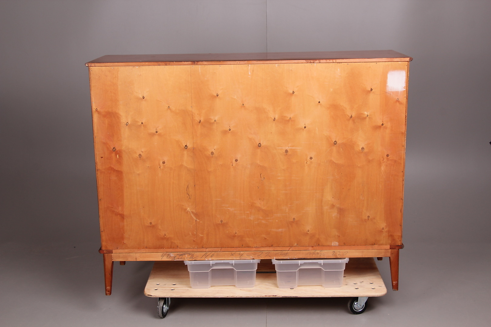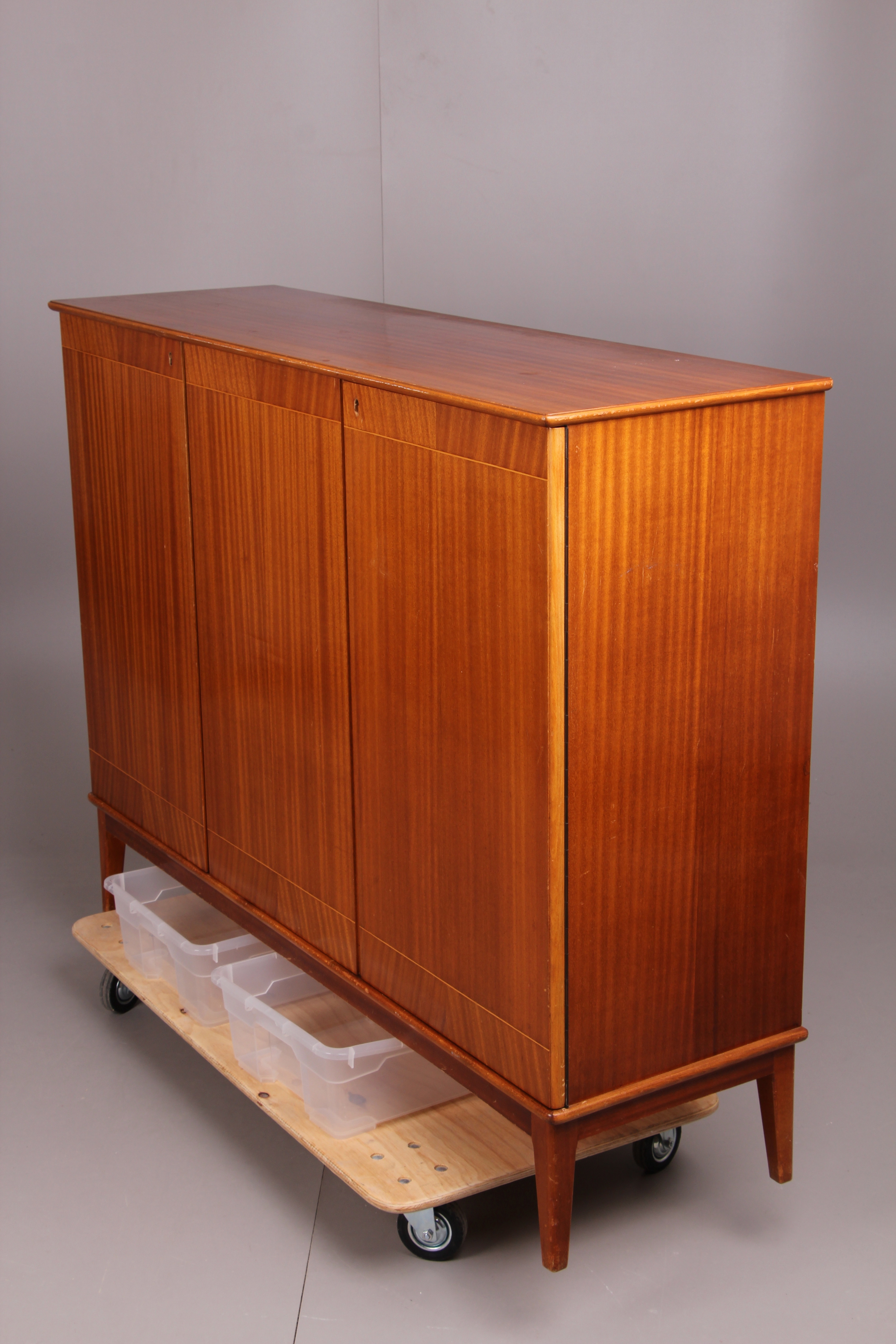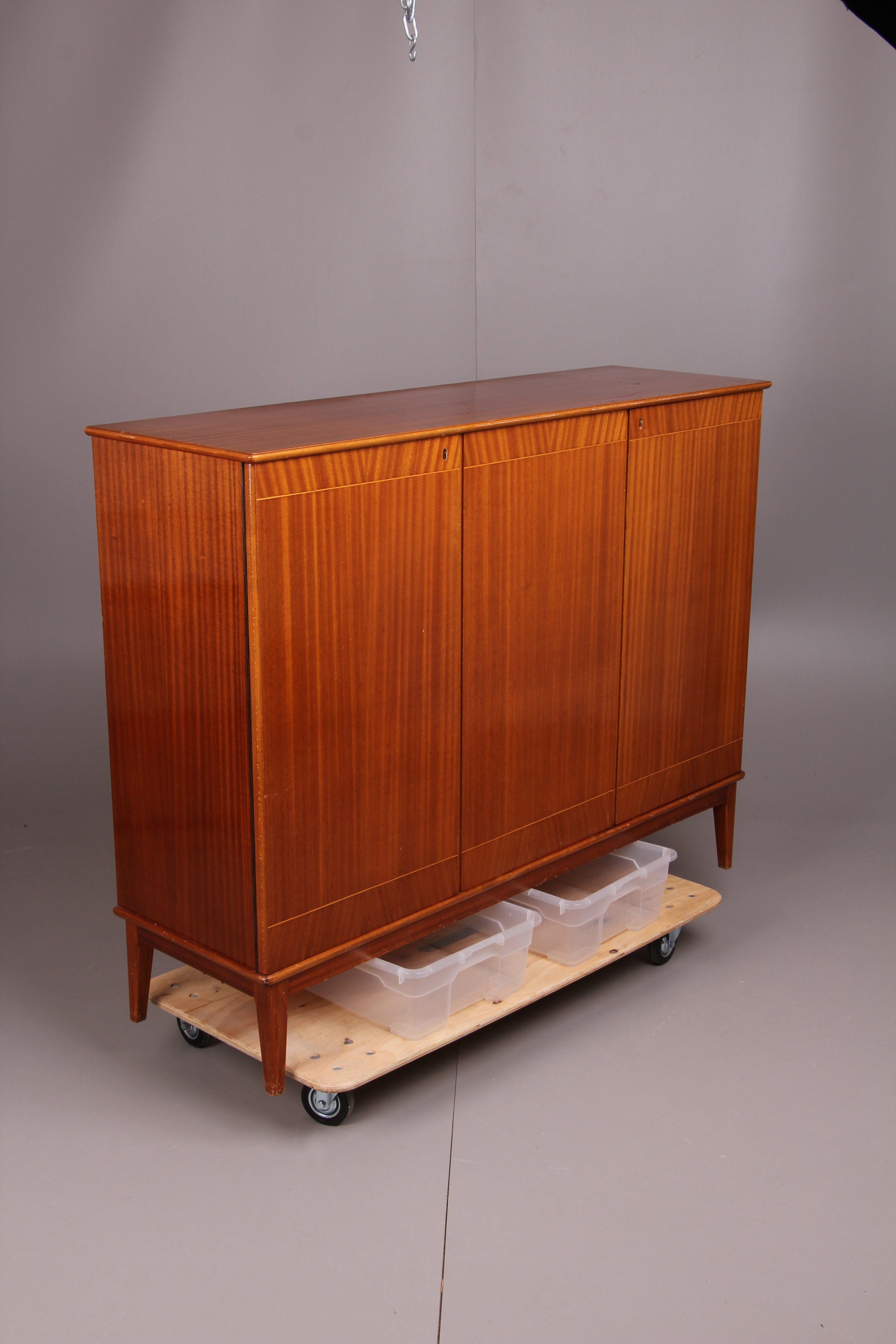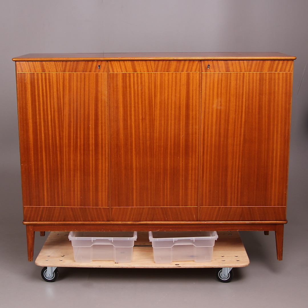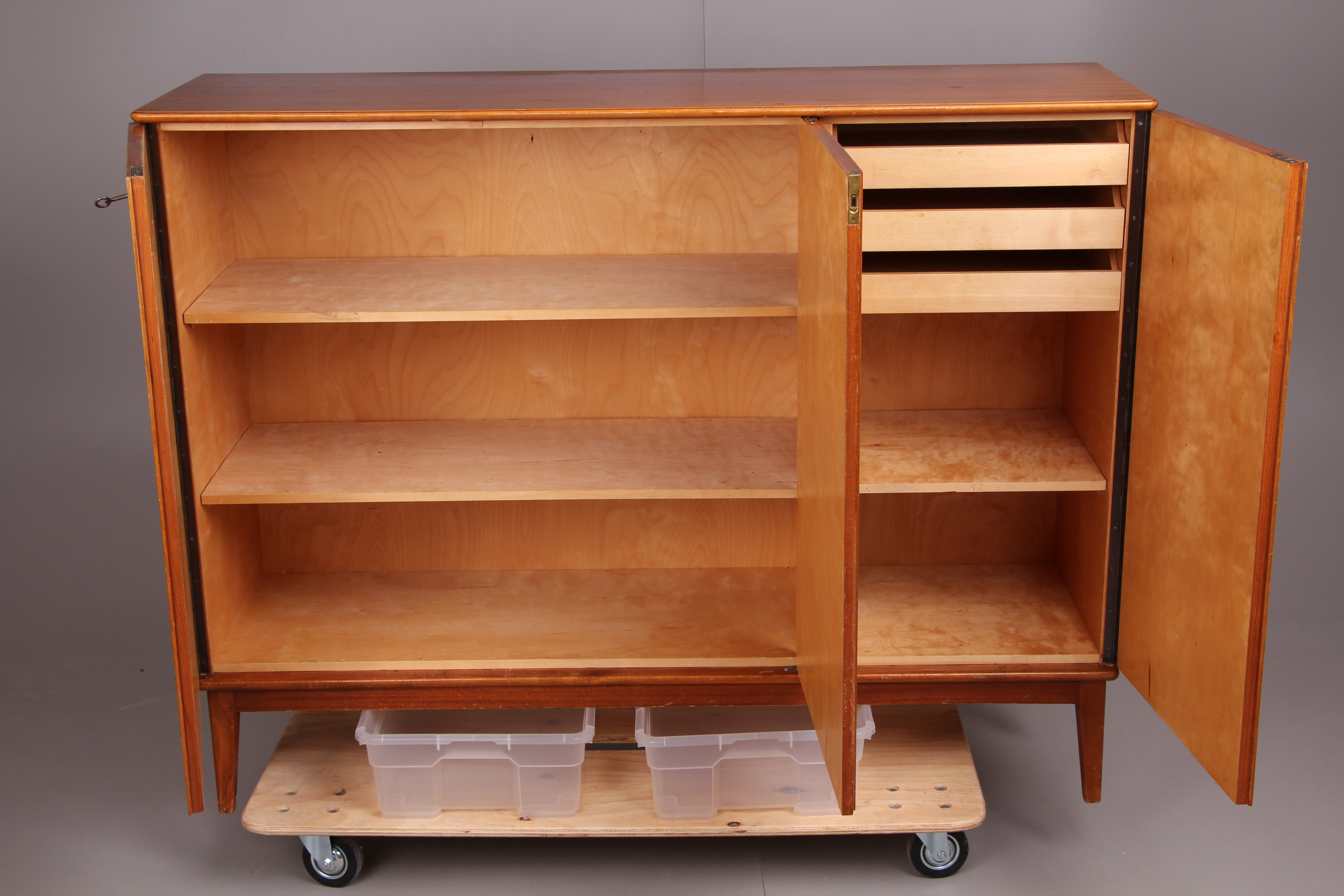 257640. LEINENSCHRANK, Teak, Mitte 20. Jahrhundert.