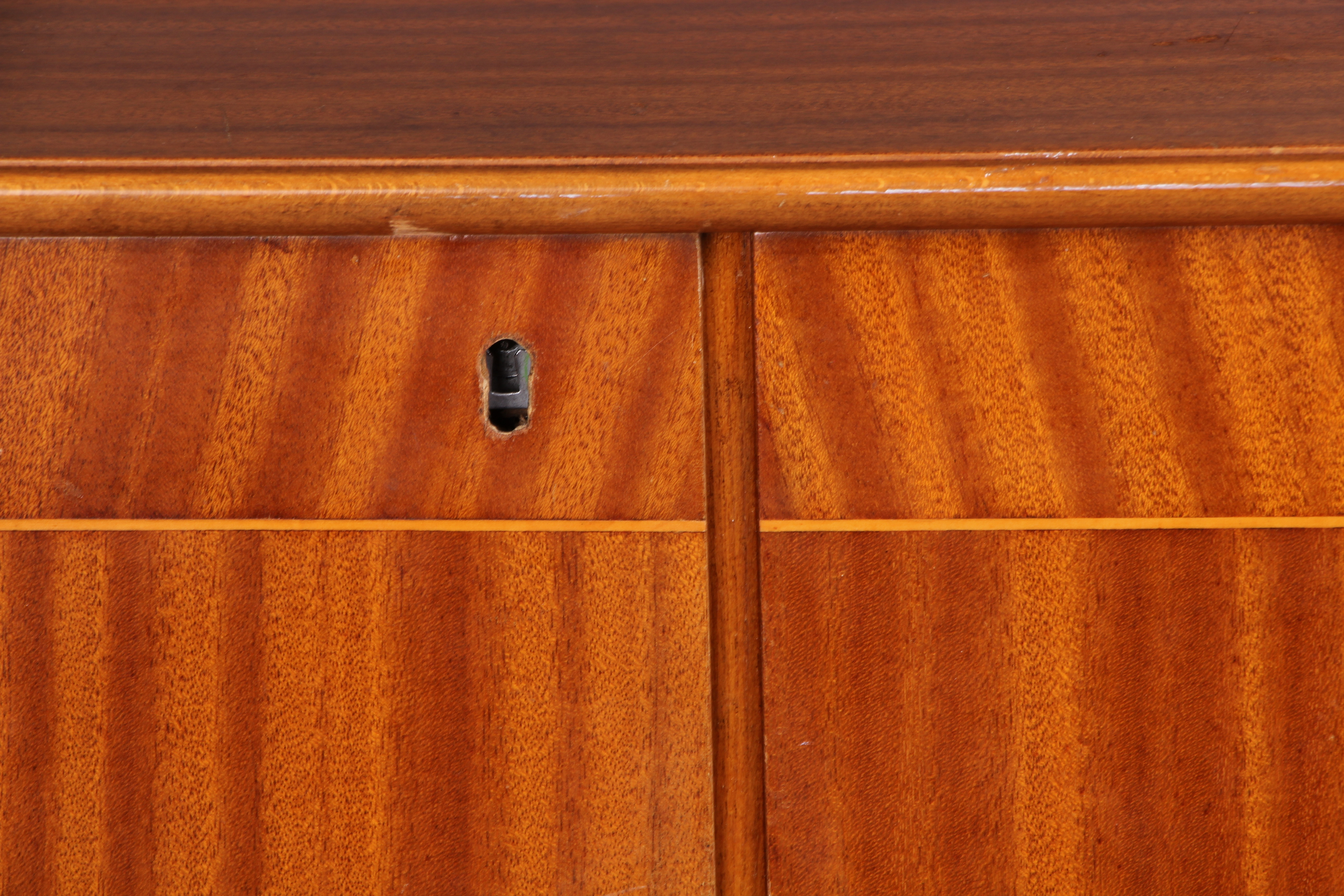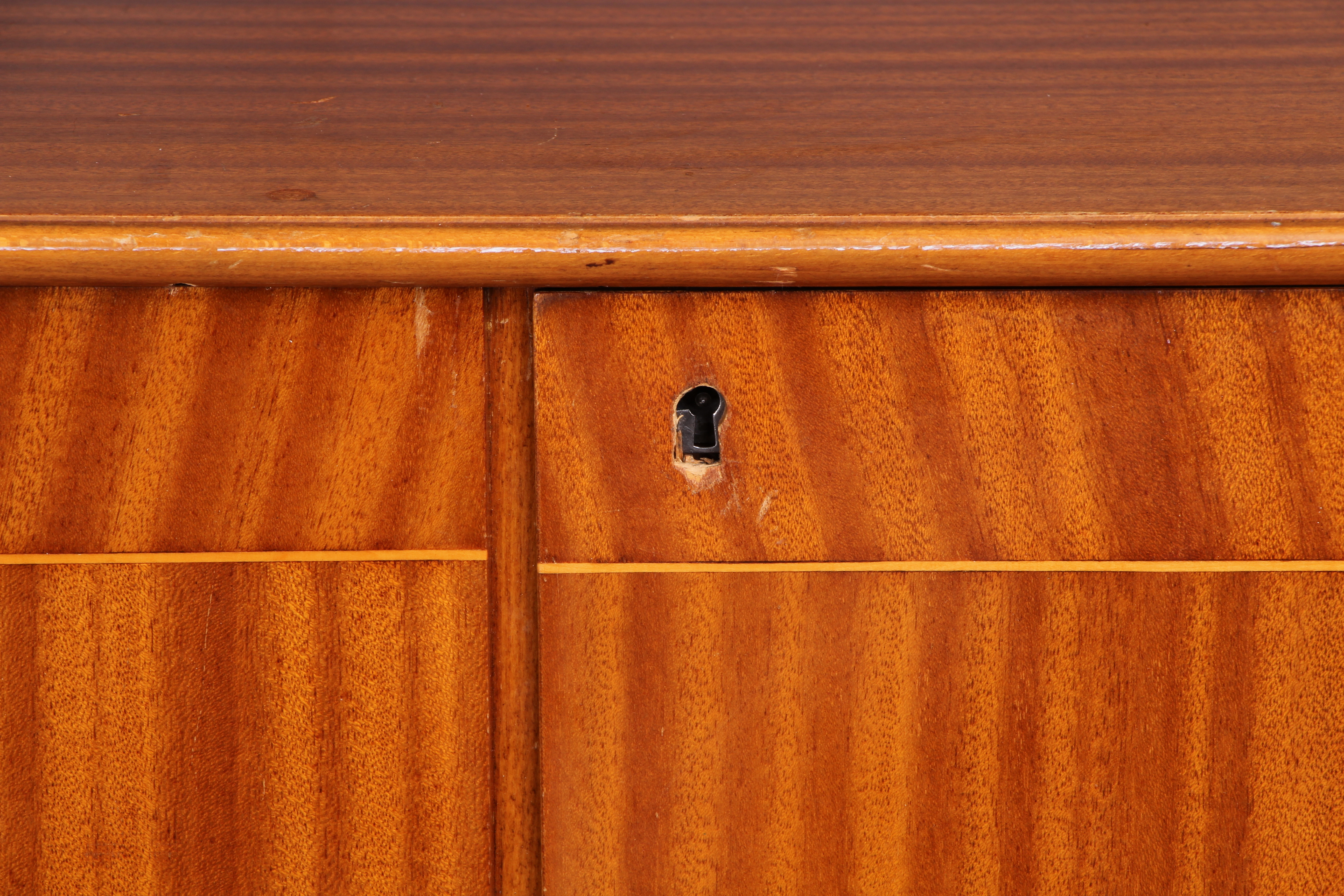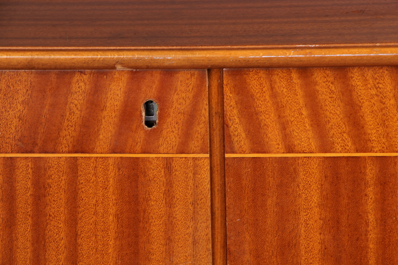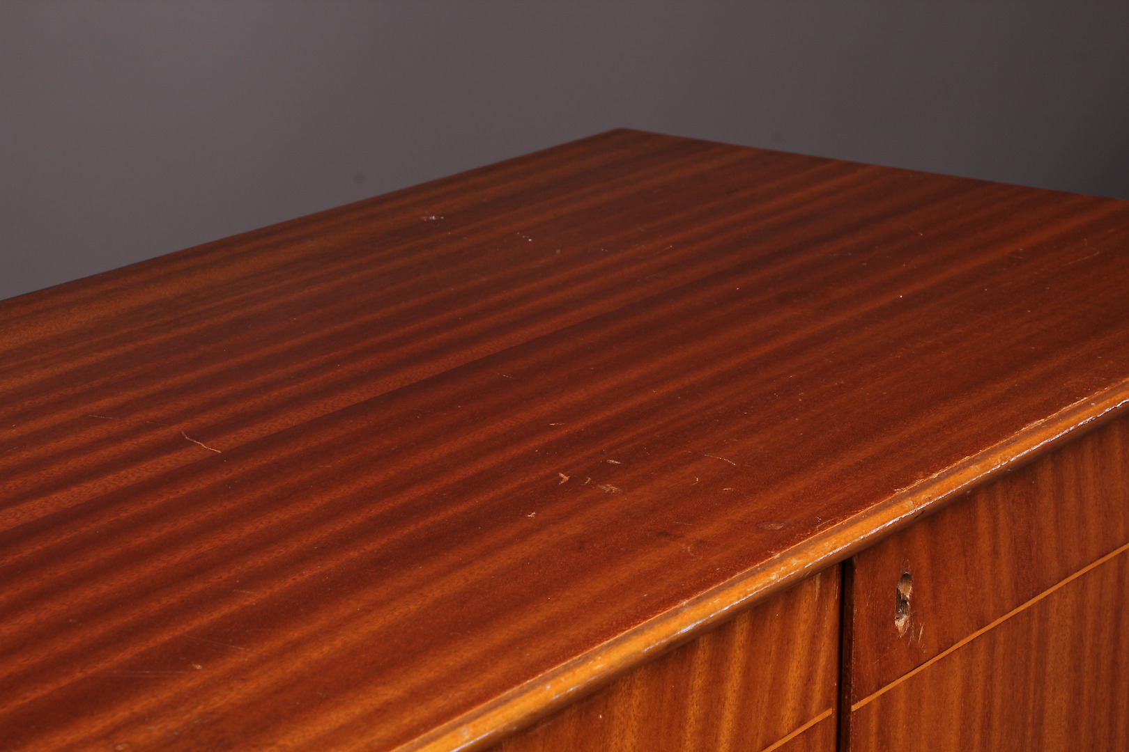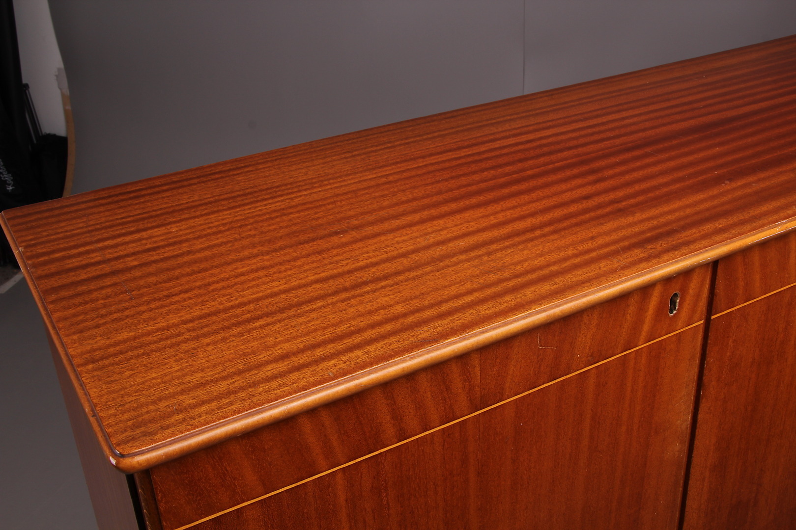 257640. LEINENSCHRANK, Teak, Mitte 20. Jahrhundert.