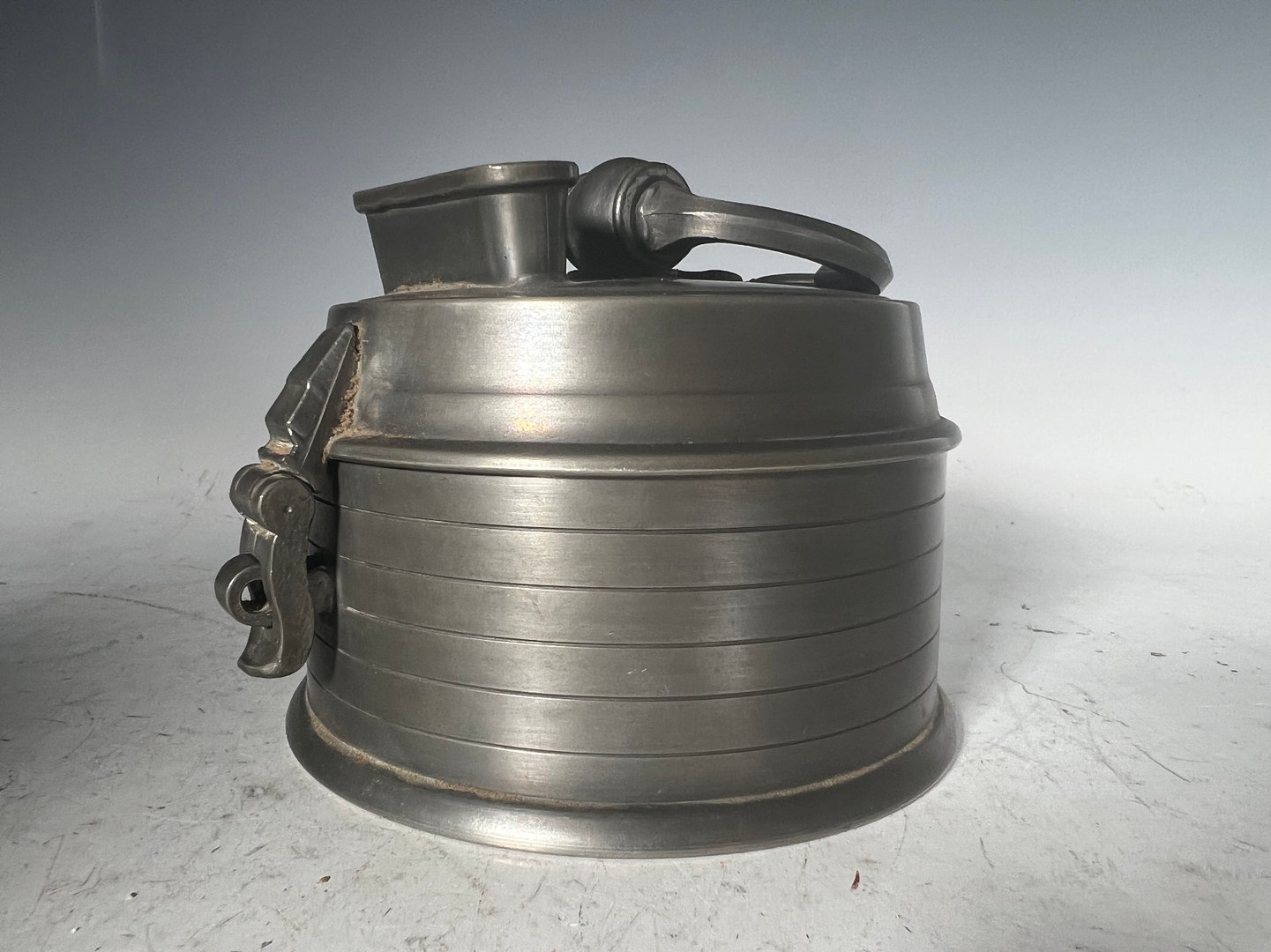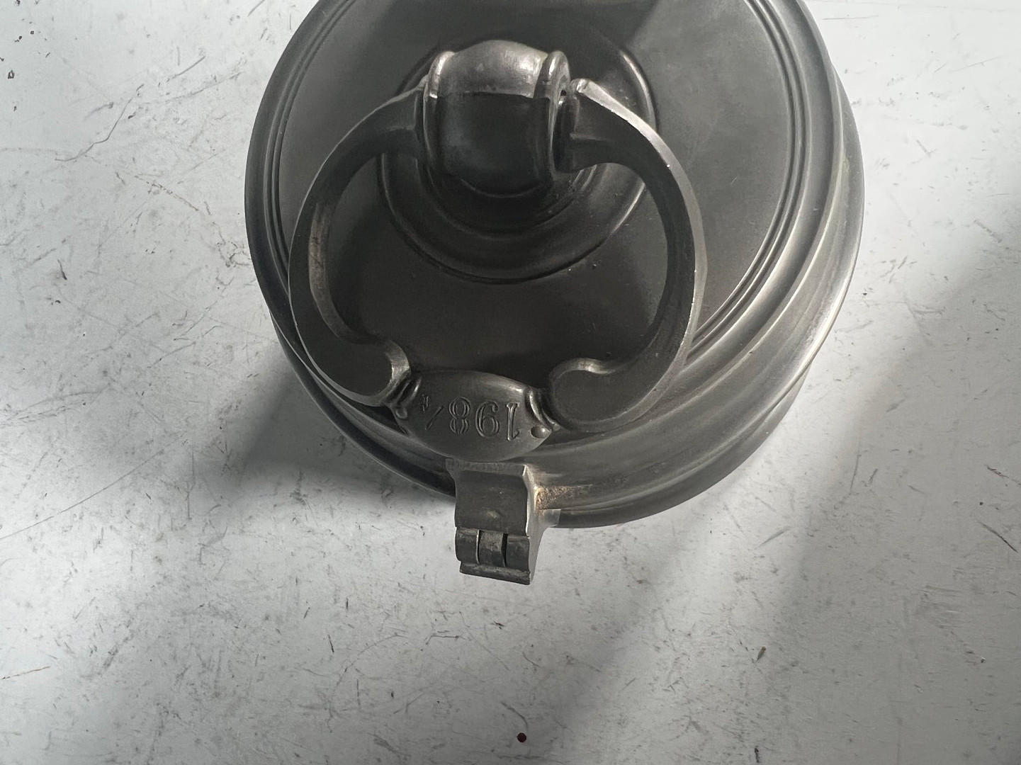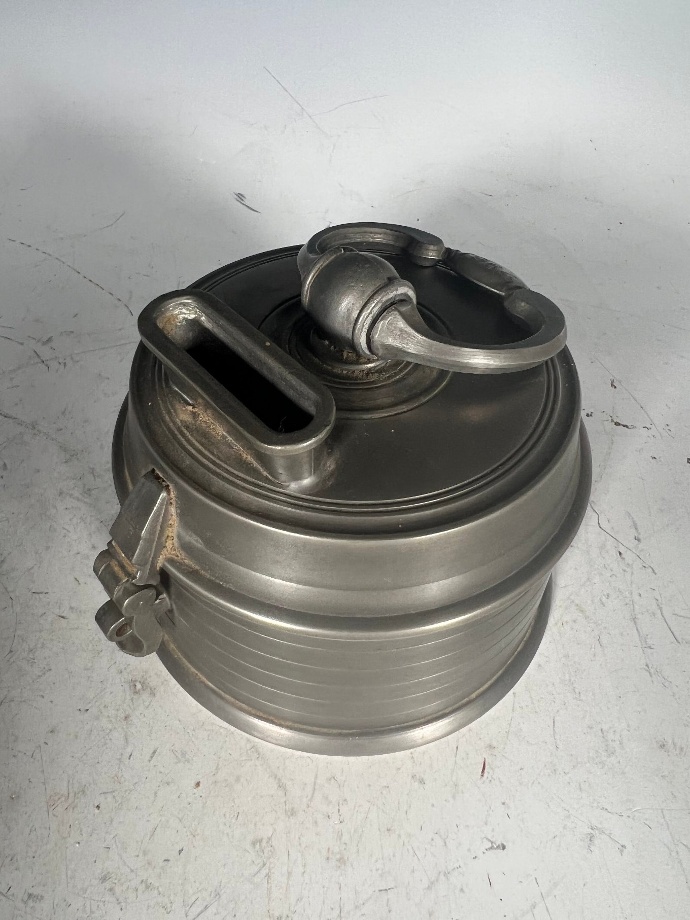 2577076. Antike Spardose aus Zinn.