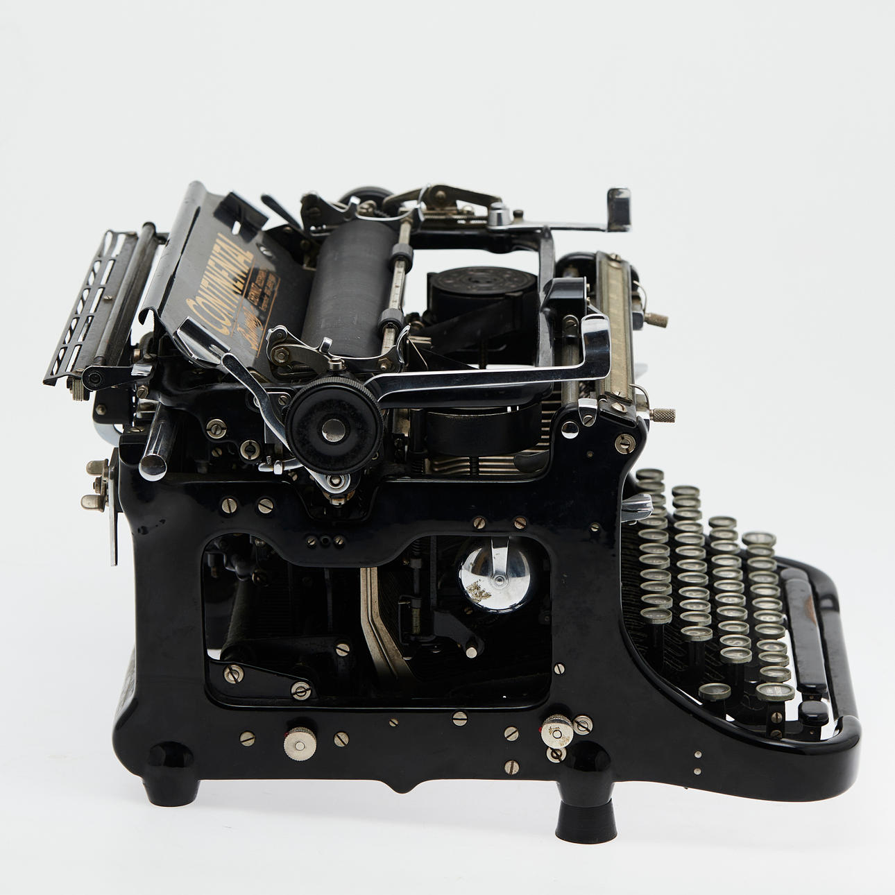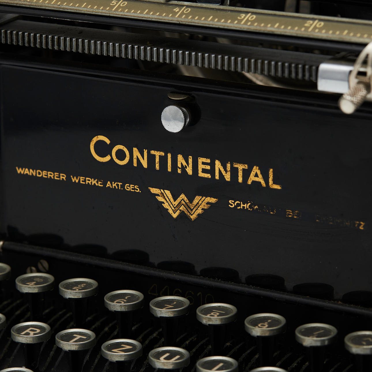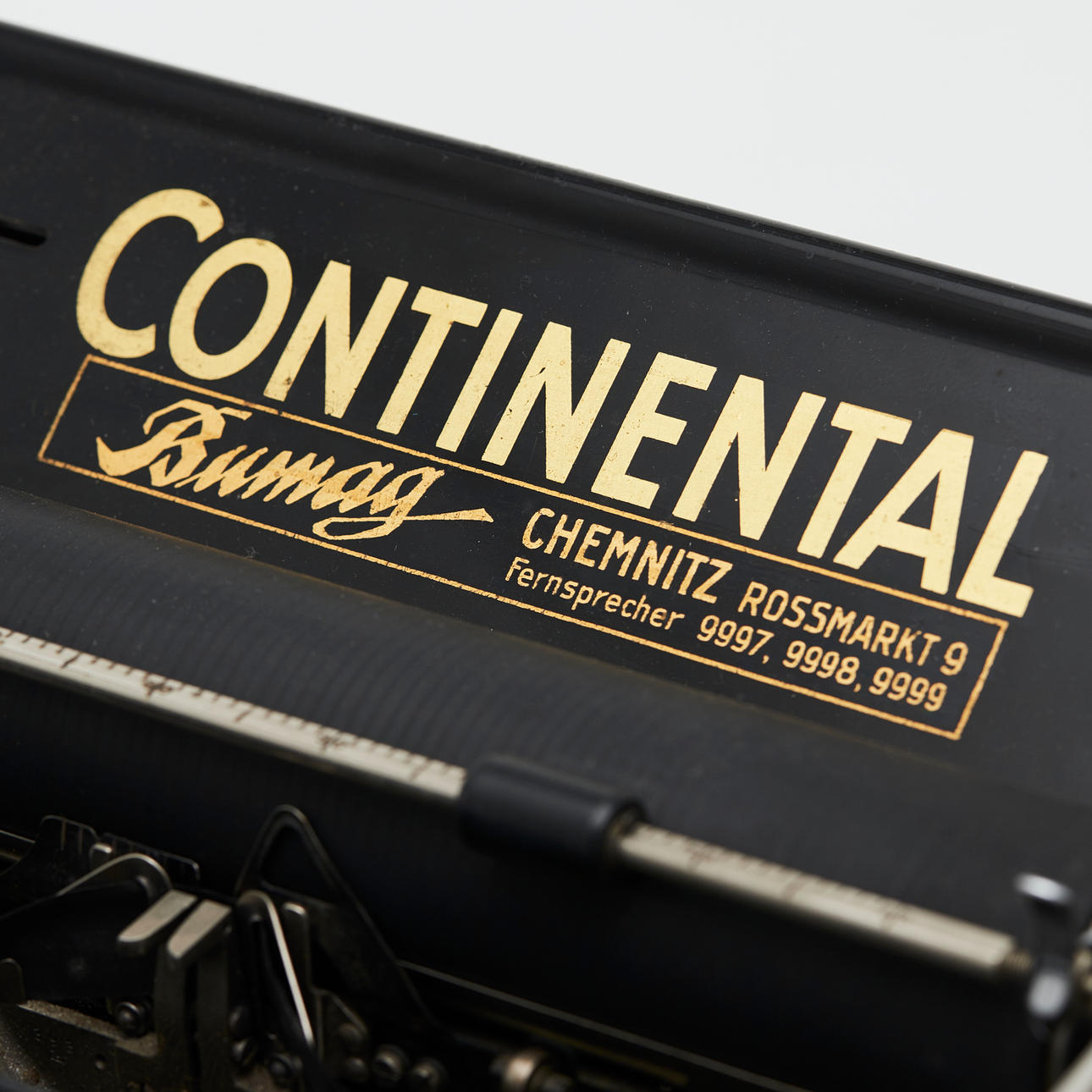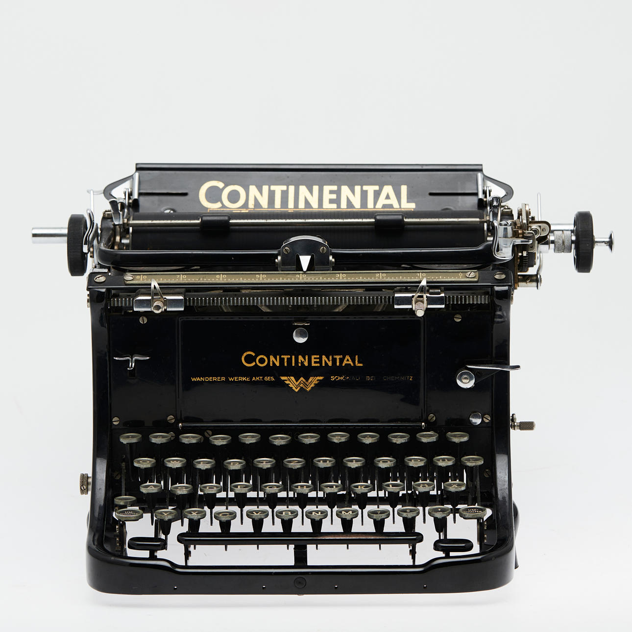 Continental, Schreibmaschine, Deutschland. Mechanische Schreibmaschine aus Metall und Kunststoff in schwarzer Ausführung, Zahl- und Sonderzeicheneingabe möglich, H.25cm, L.38cm, B.34cm.