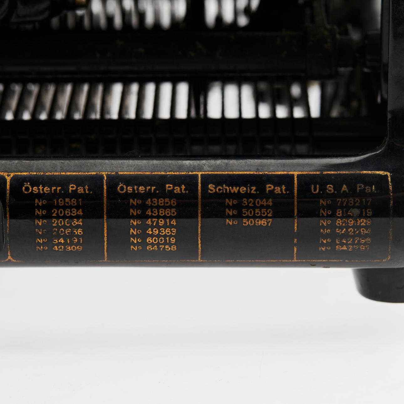 Altersgemäße Gebrauchs- und Reibespuren, partieller Abrieb und Kratzer in Kunststoff und Metall, ein Fuß fehlend.
