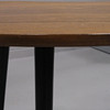 Tisch mit Teakholzplatte. Schwarze Beine. Höhe: ca. 54 cm. Maße der Scheibe: ca. 60 x 42 cm.