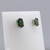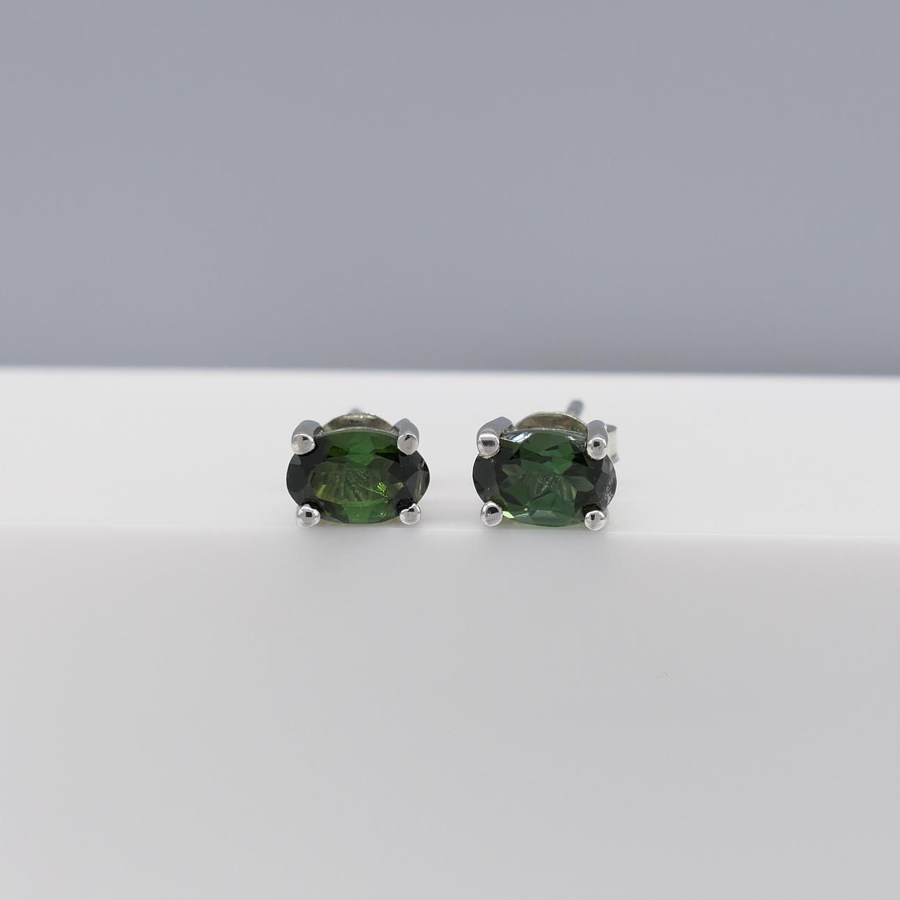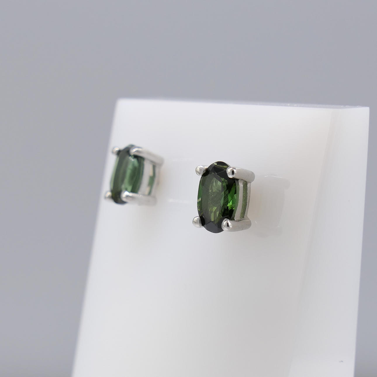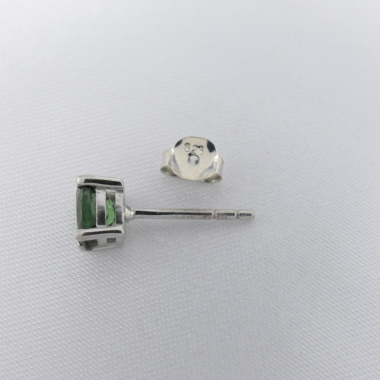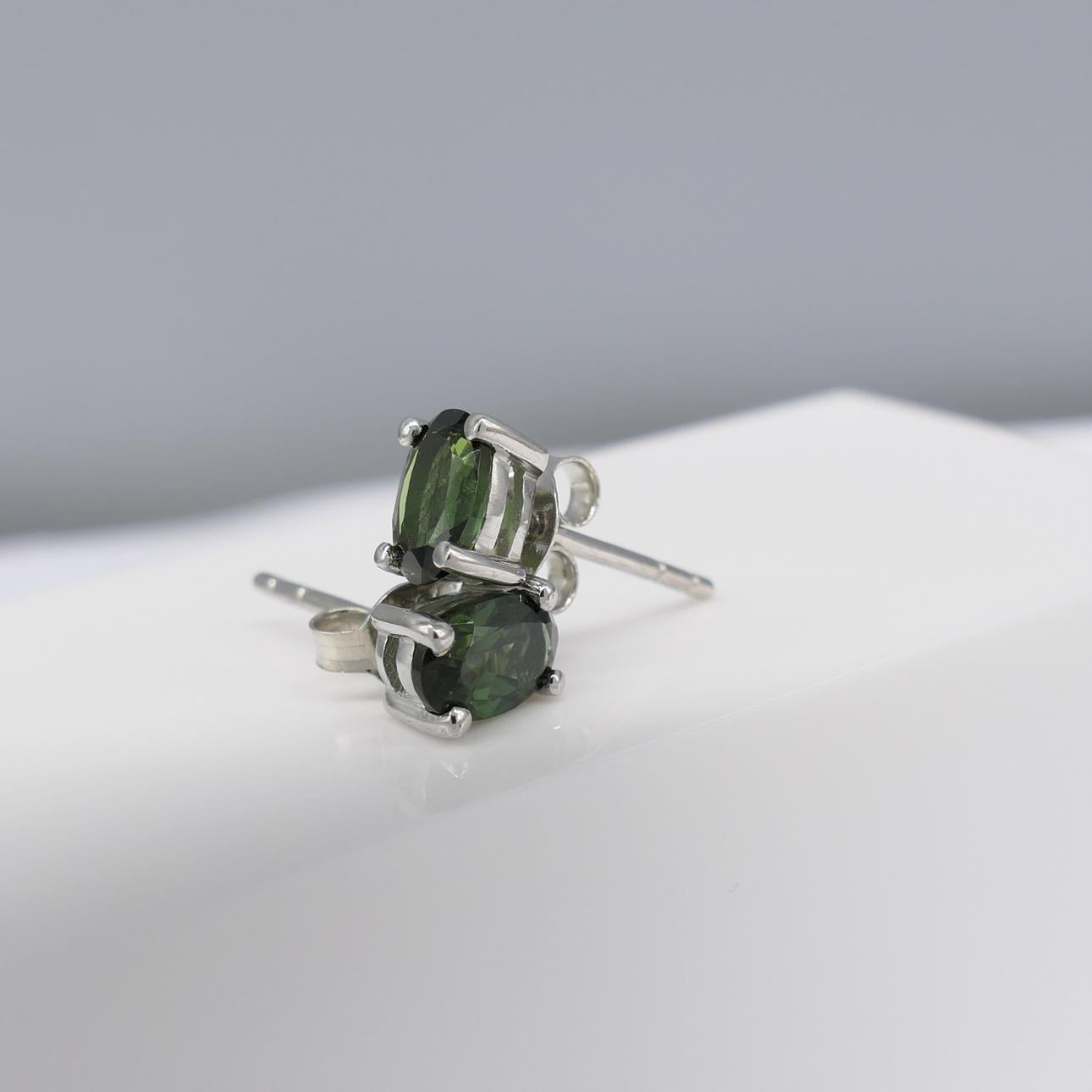 Ein Paar grüne Turmalin-Edelstein-Ohrstecker im Ovalschliff in Silber mit Schmetterlingsverschluss.
