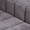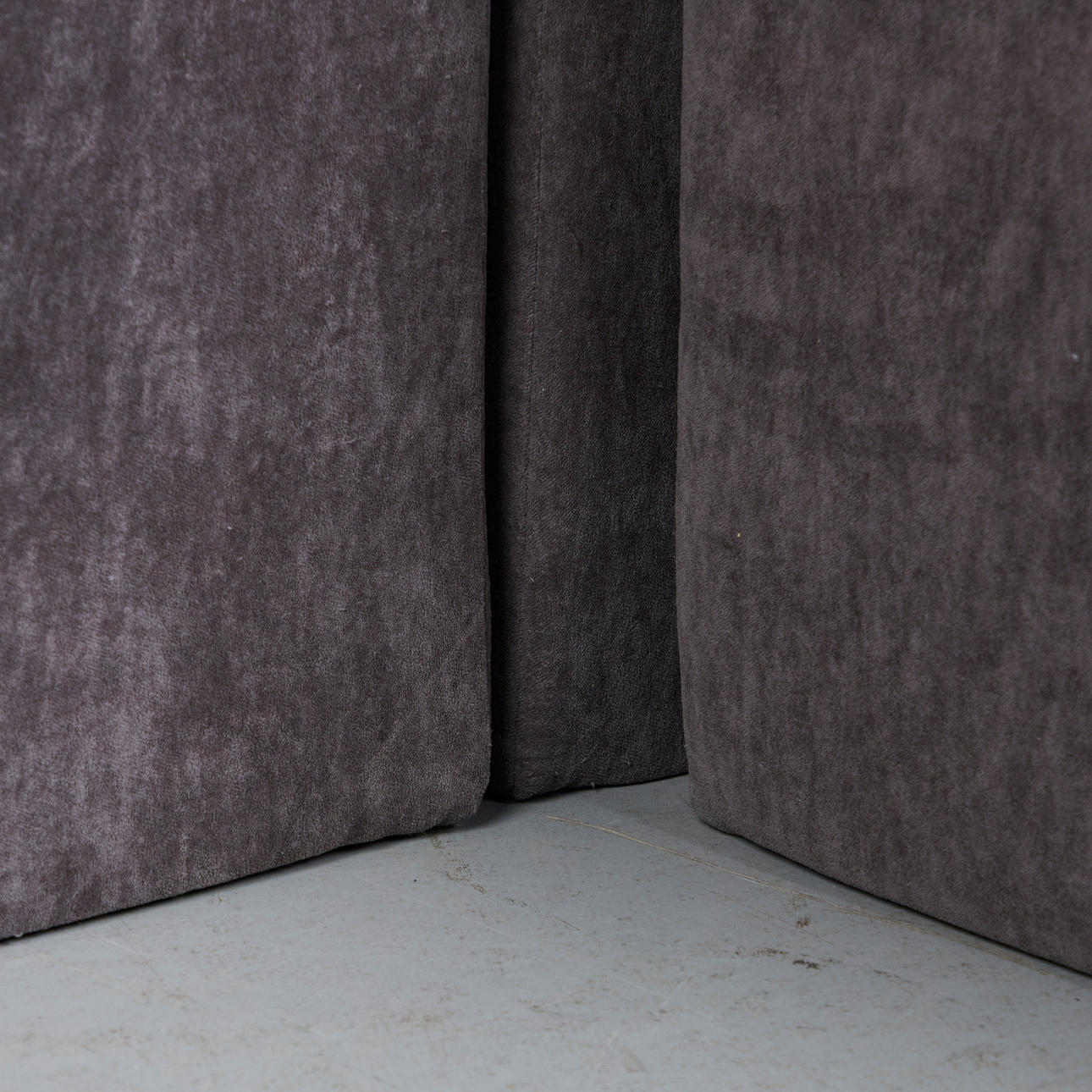 Lübke, Modulsofa / Ecksofa mit Hocker, Modell 'Quattro', Schaumstoff, Stoff, Entwurf 1970er Jahre, Deutschland. Ecksofa bestehend aus drei Modulen, davon ein Eckmodul, sowie ein Hocker, jeweils mit einer rechteckigen Konstruktion aus Schaumstoff, bezogen mit einem grauen, gestepptem Stoff, Module: H.88cm, Sitzhöhe: 63m, B.90cm, T.90cm, Hocker: H.43cm, L.90cm, B.90cm. (4).