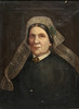 Unterteil, kleinere Löcher nach sep. Bild Oberteil, Farbabfall Stirn der Frau, Stoßschaden, sehr kleines Loch Leinwand ungedehnt.