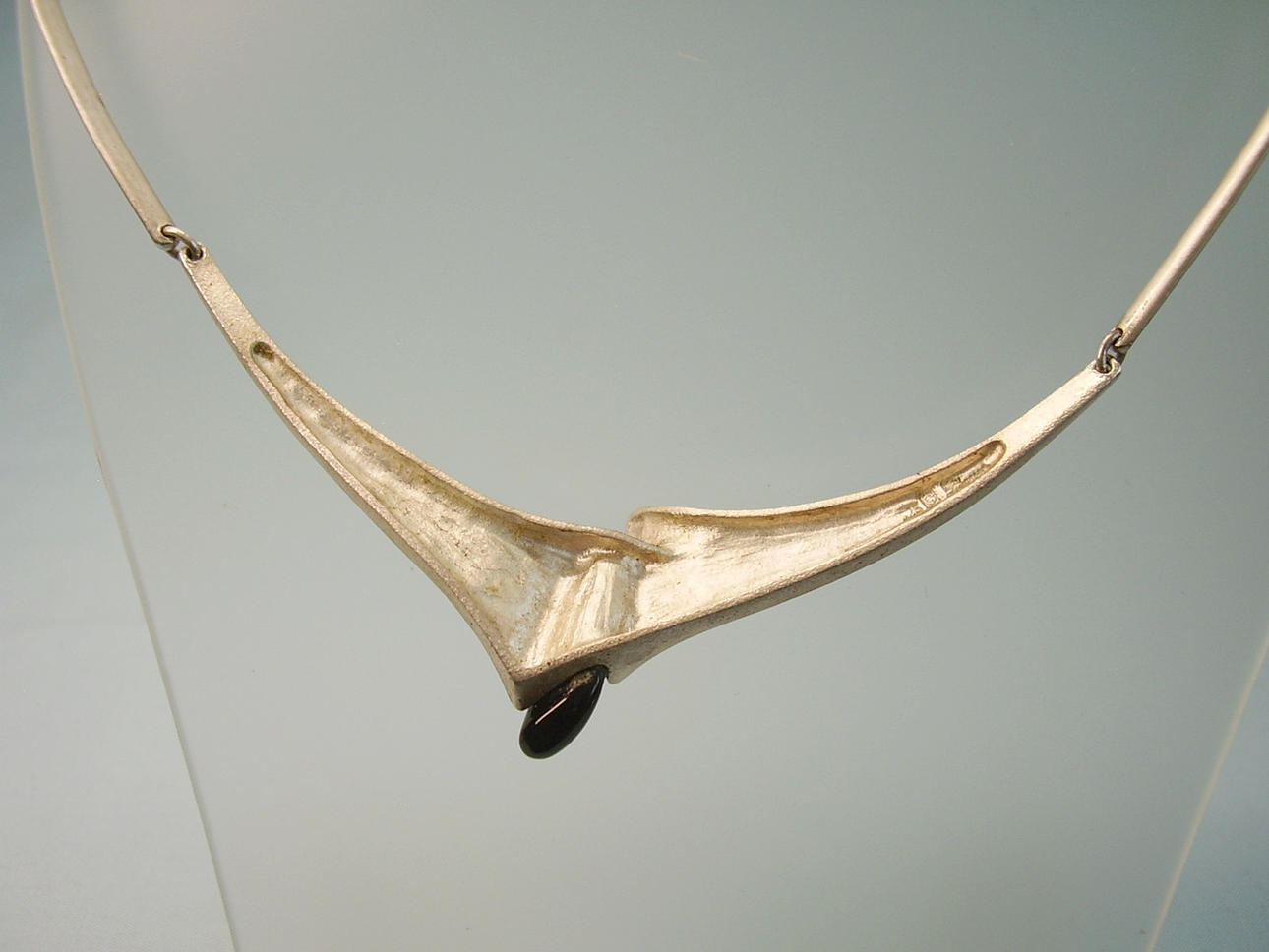 Das elegante Designer Collier ist in Silber 925 gearbeitet, punziert und signiert für die Werkstatt Günthner, Pforzheim mit der Modellbezeichnung "Bijou Jeunesse".