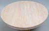 die helle, gekreuzte und furnierte Platte, die entfernt werden kann, um eine kleinere Kippplatte freizulegen, auf einer sechseckigen Spreizsäule, die Plattformbasis mit konkaven Seiten, auf abgestuften Spreizfüßen, 160 cm Durchmesser x 77 cm hoch, die kleinere Tischplatte mit den Maßen 122 cm Durchmesser x 75 cm hoch.