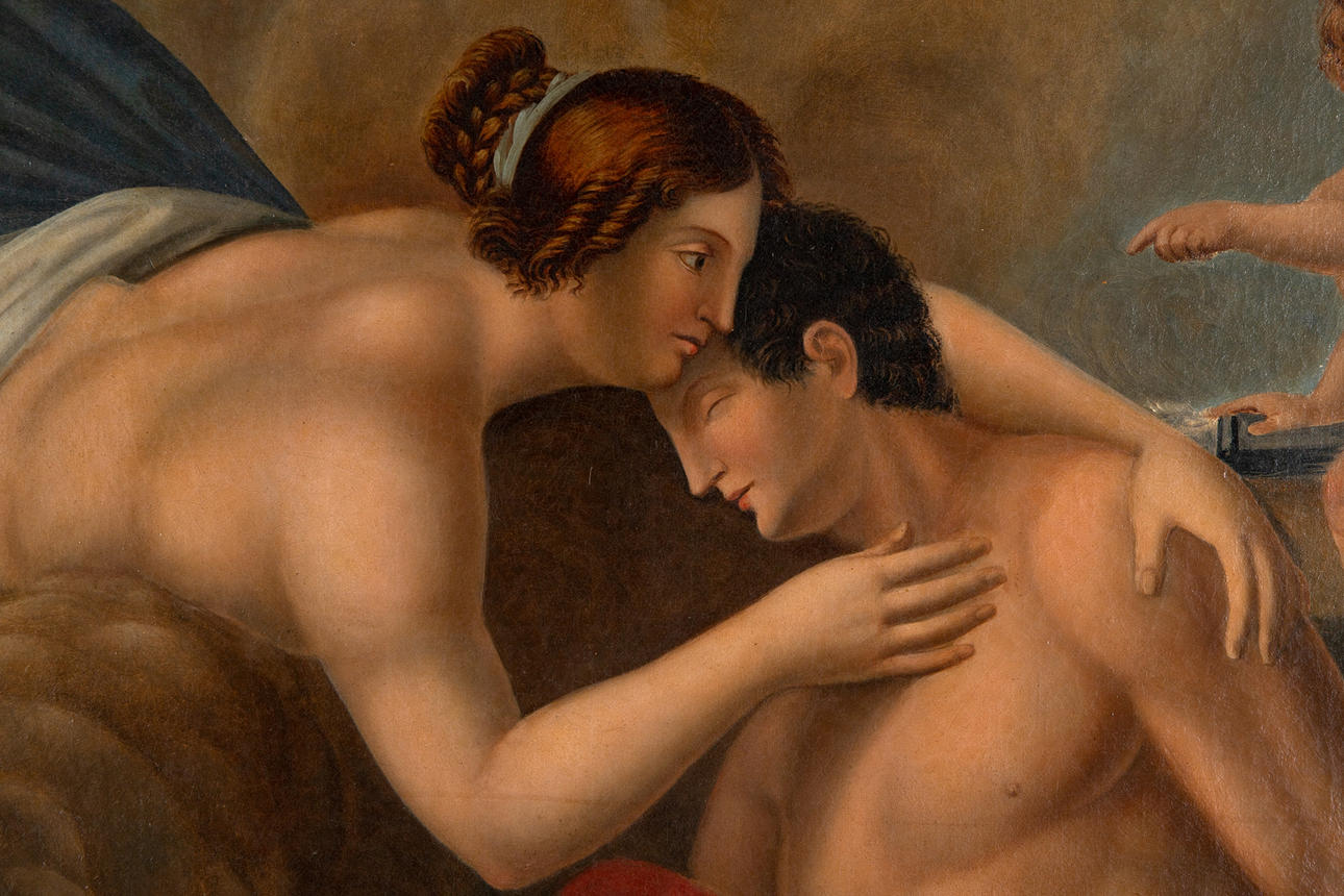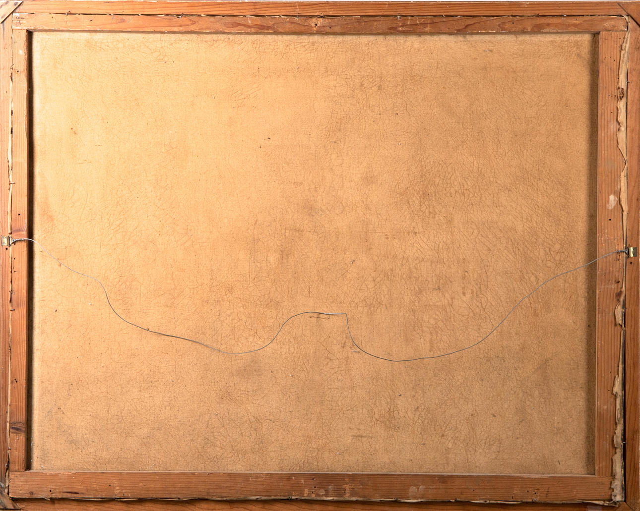 Mann und Frau mit zwei Putti. Öl auf Leinwand. 1930er. 106 x 134 cm. Unten rechts unleserlich signiert.