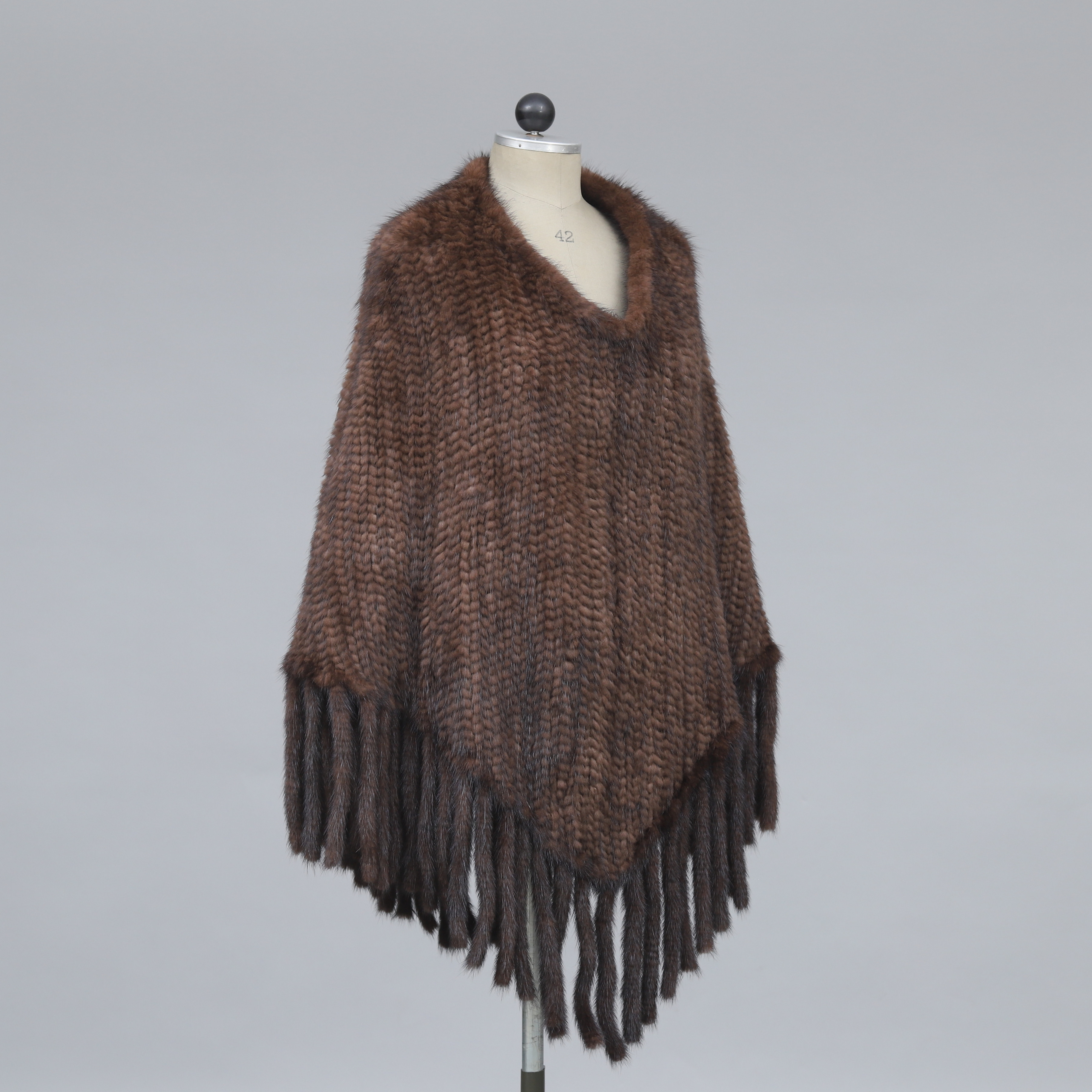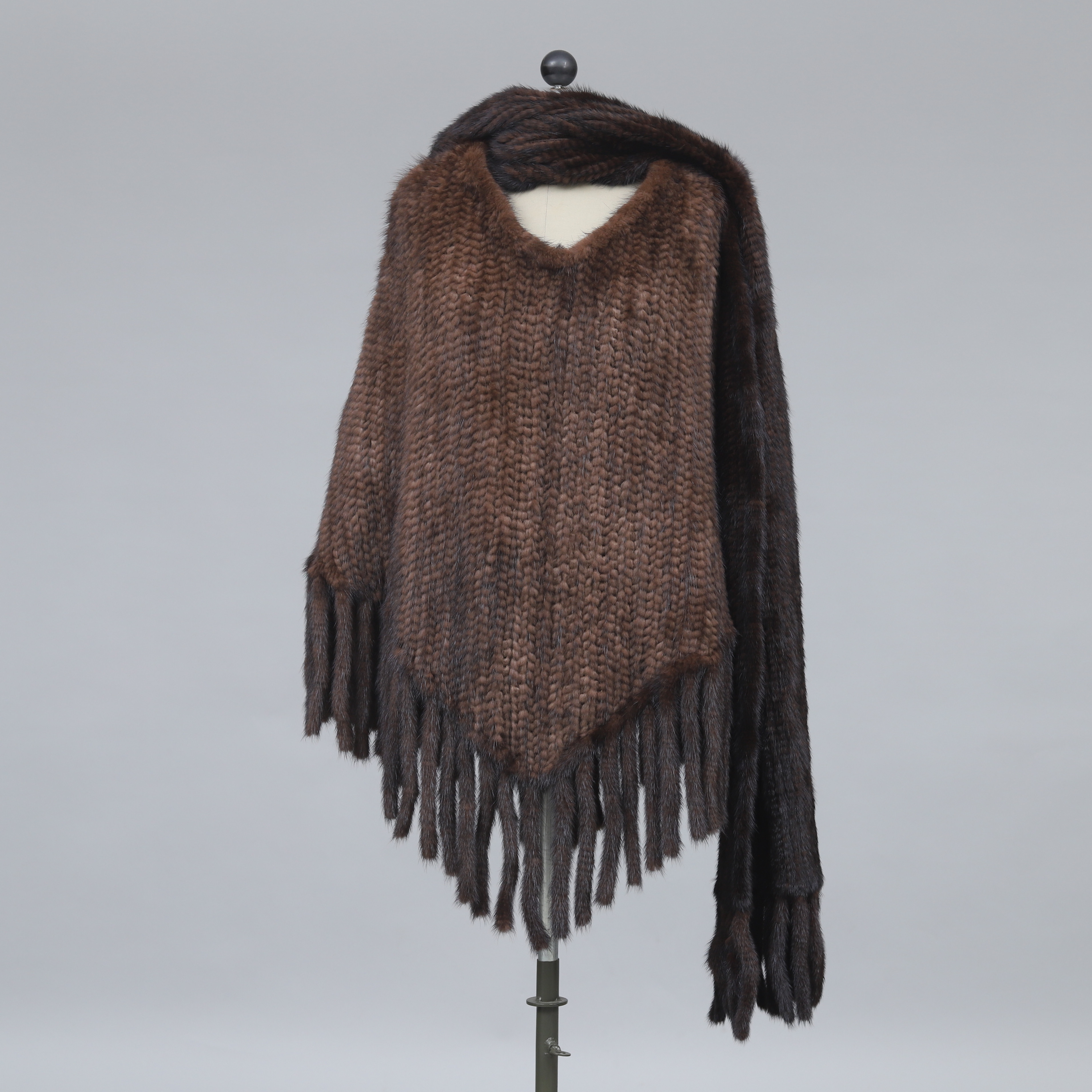 2600494. PONCHO und SCHAL, gestrickter Nerz.