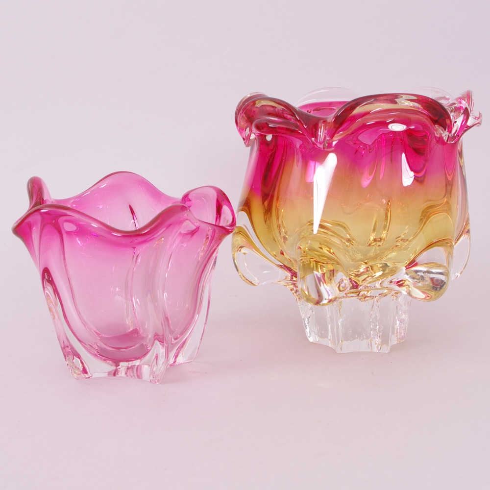 260432. SCHALEN, 2 Stück, Kunstglas.