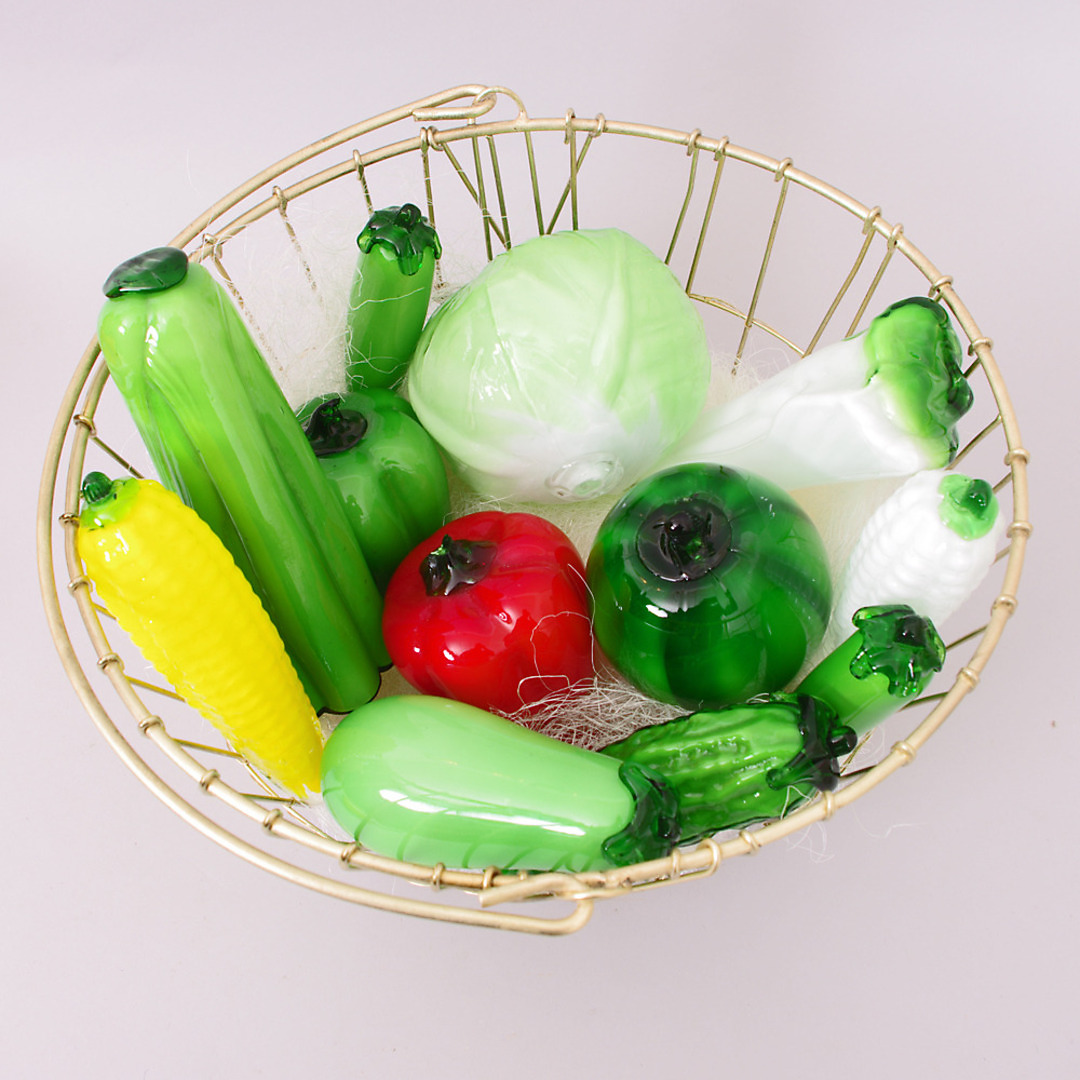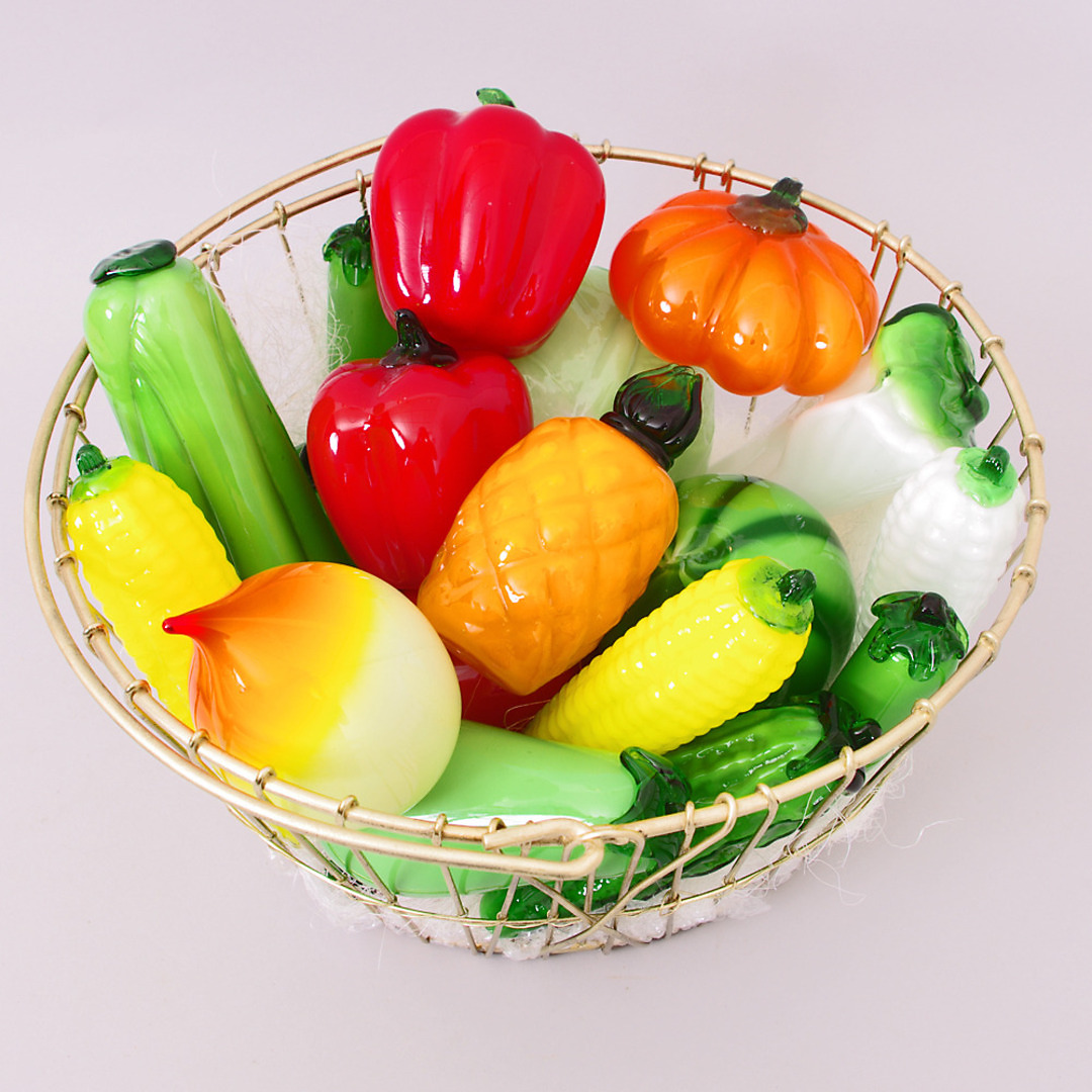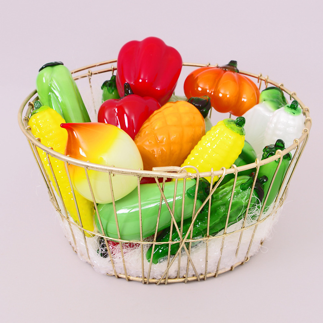 260449. FRUCHTKORB, Glasfrüchte im Metallkorb.