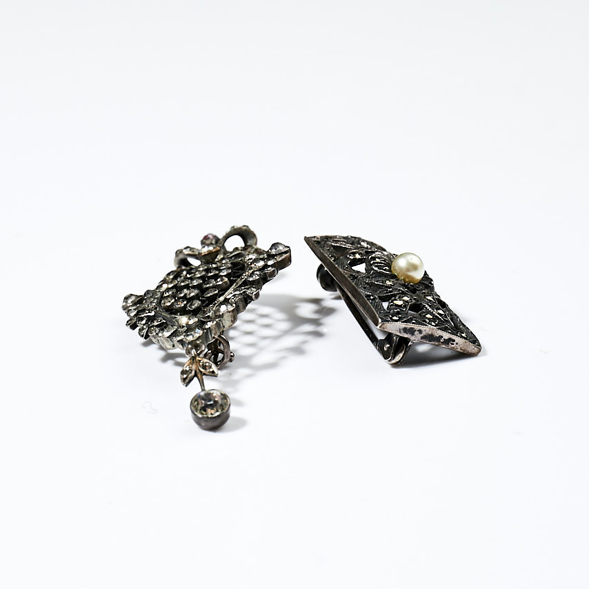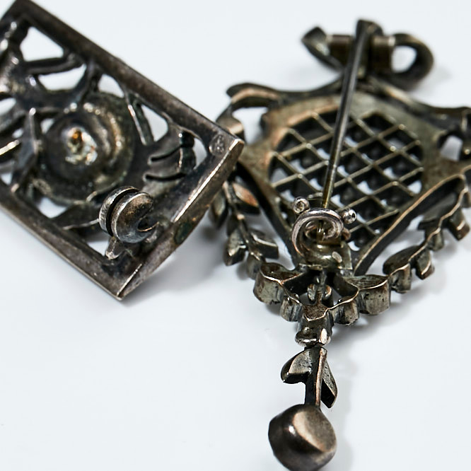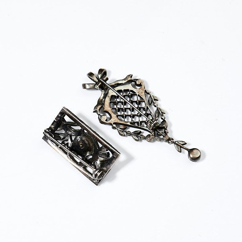 2604608. BROSCHEN, 2 Stk., Silber, sowie Markasit & Glas.