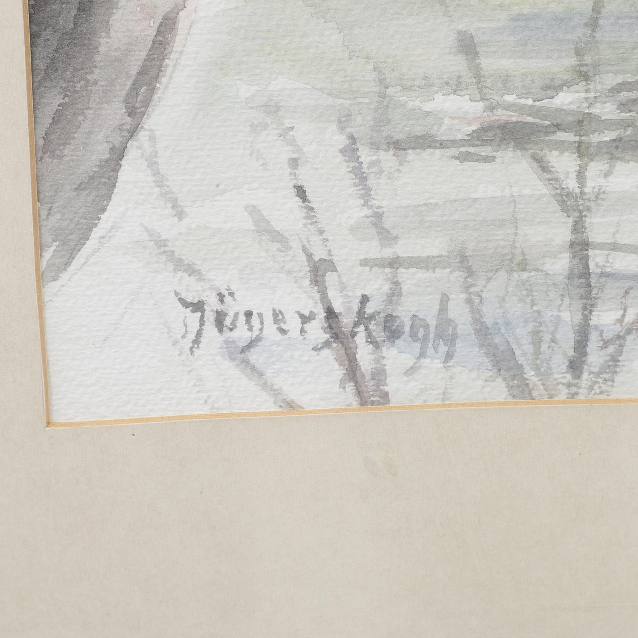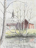 DAVID JÄGERSKOGH. Kirche am Fluss, Aquarell, signiert.