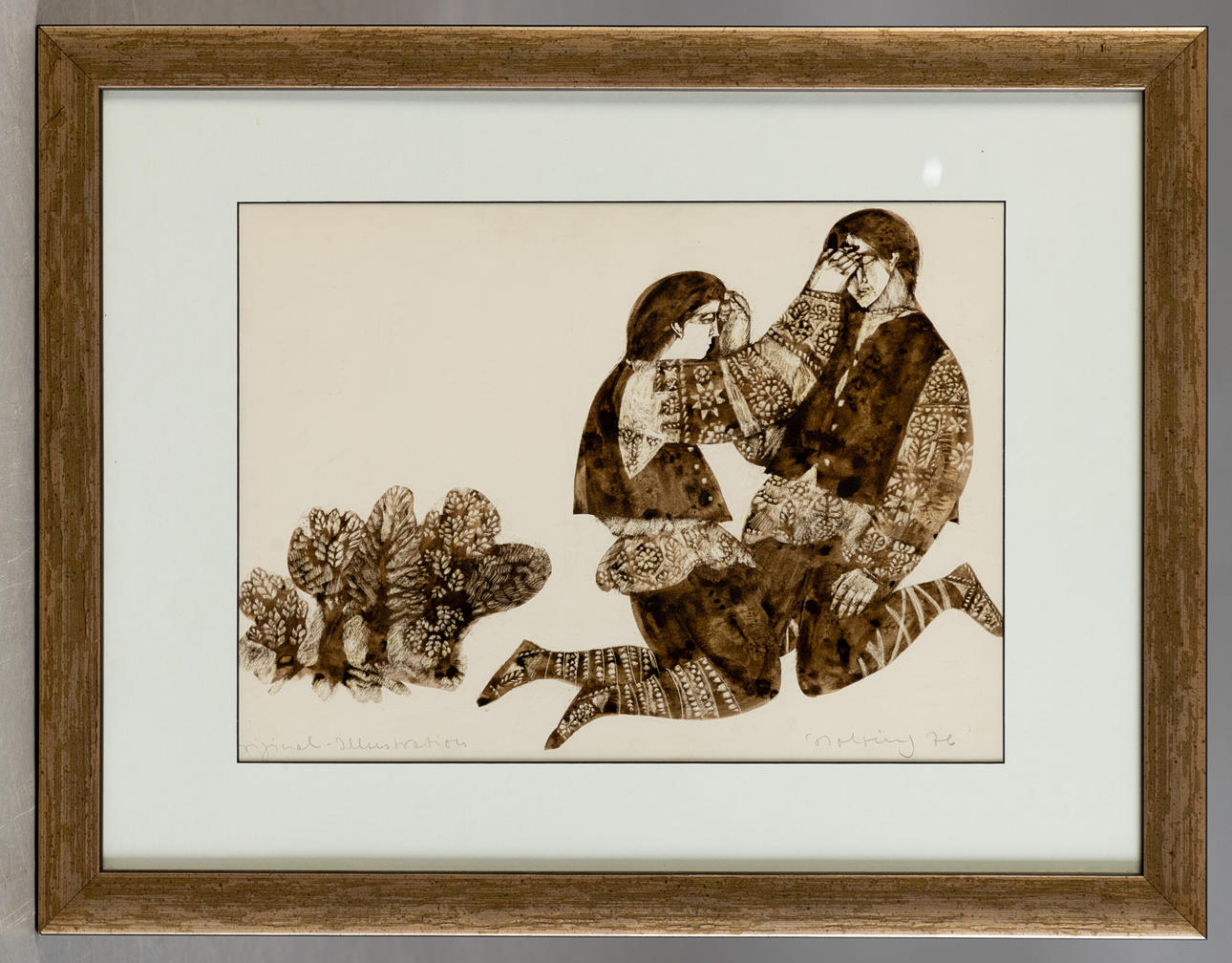 Herbert Holzing (1931-2000), Illustration zu Otfried Preußlers Roman 'Krabat', Monotypie, 1976, signiert, datiert und bezeichnet 'Original Illustration', ca. 30 x 41 cm (Passepartoutausschnitt), hinter Passepartout und Glas gerahmt, mit Rahmen ca. 49 x 62,8 cm.