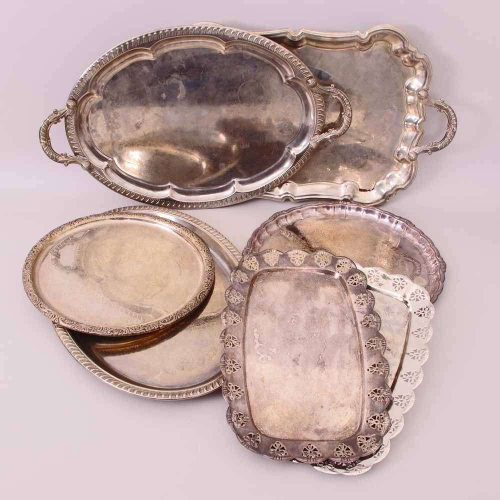 260719. TELLER UND TABLETTS, Neusilber/ Nickel.