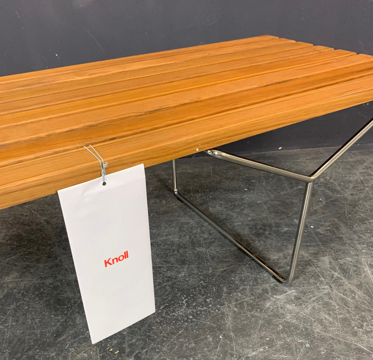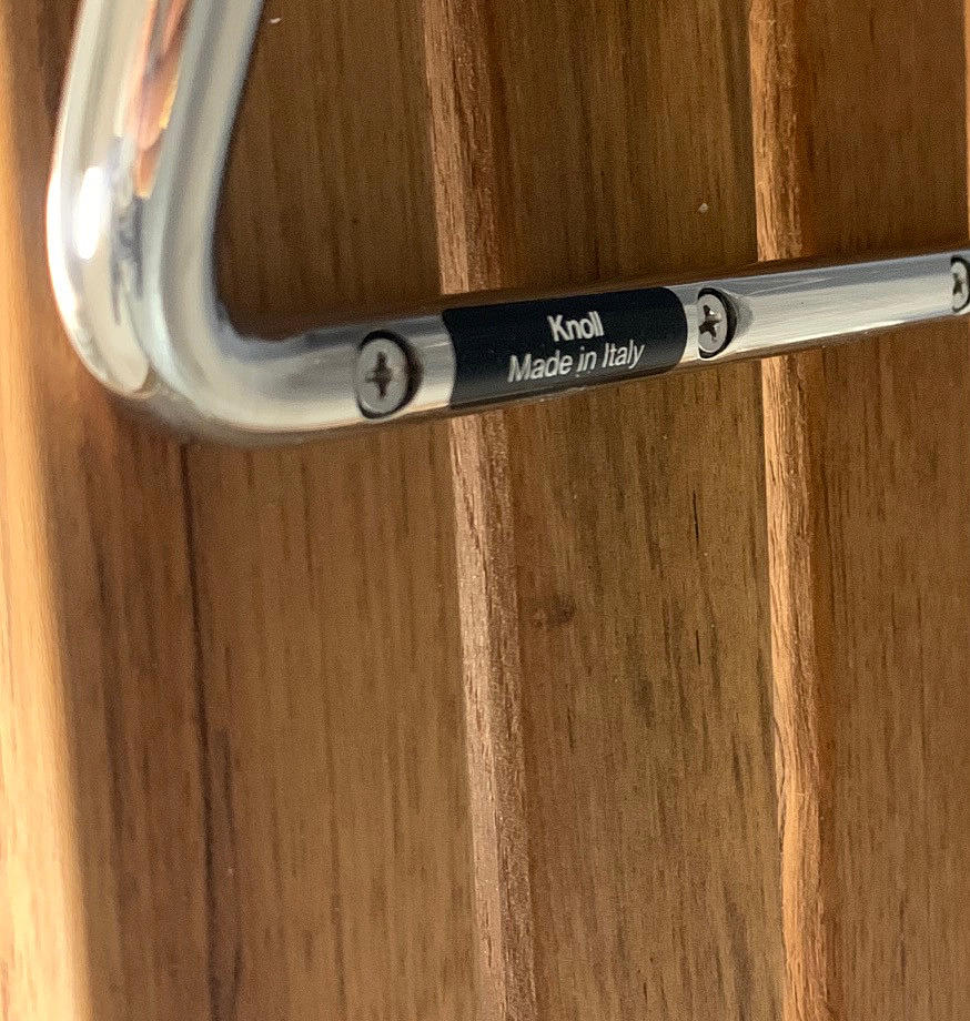 Metallgestell verchromt mit Holzlatten in Teakholz.