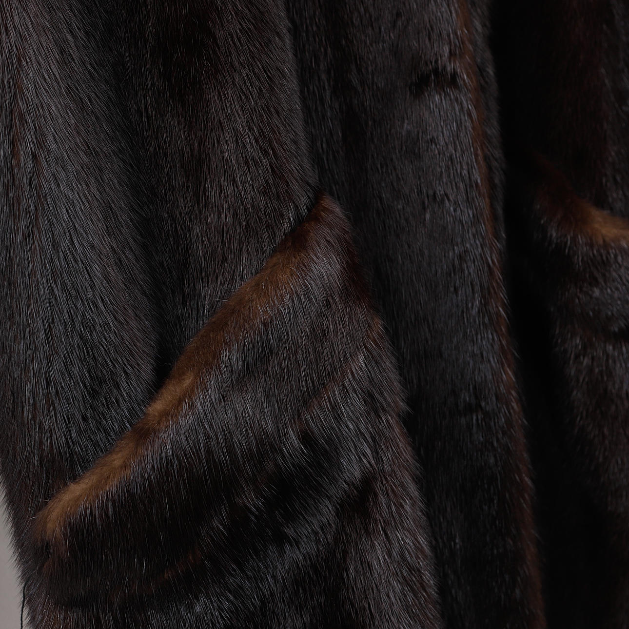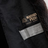 Tragespuren, stellenweise härter an Taschen und Säumen, Fadenrutsch an einer Tasche.