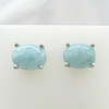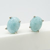 An jedem Ohrstecker dieses Paares ist ein natürlicher Larimar-Edelstein mit einer Größe von ca. 8 x 6 mm krallenbesetzt.