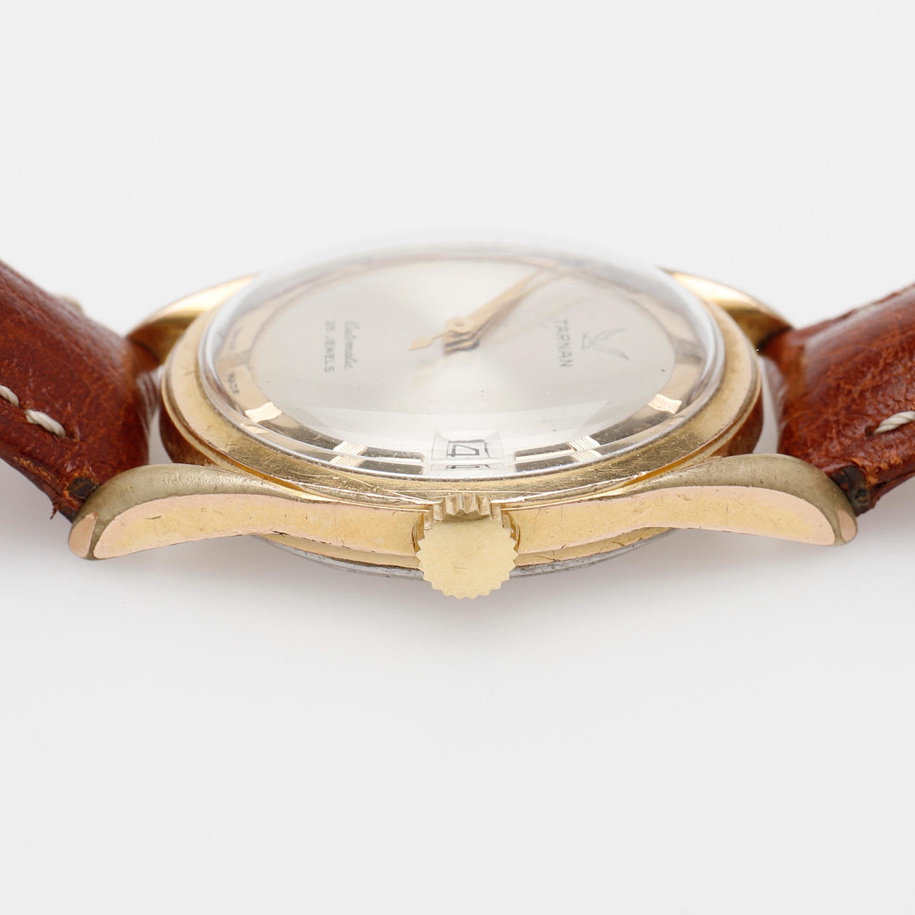 Goldenes Doppel-Automatikwerk mit Datum, ca. 1970, Durchmesser 35 mm.