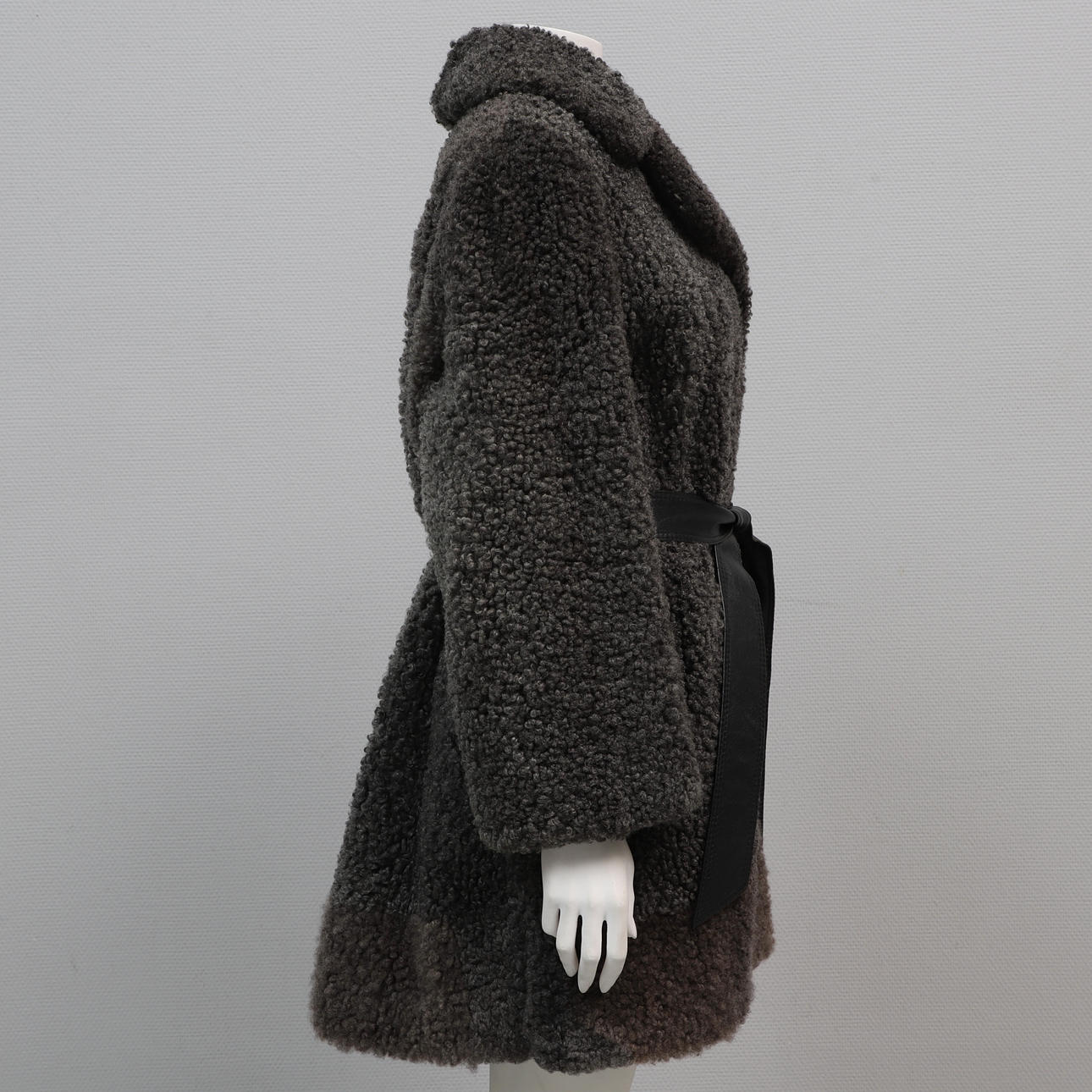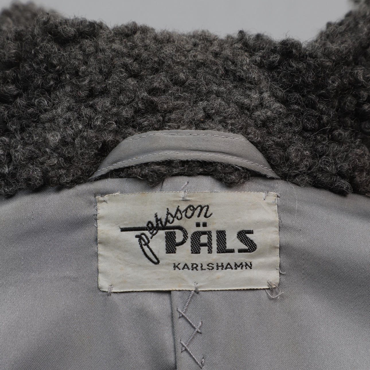 2632222. MANTEL MIT MÜTZE, dunkelgraue Schafwolle, Persson Päls, Karlshamn.